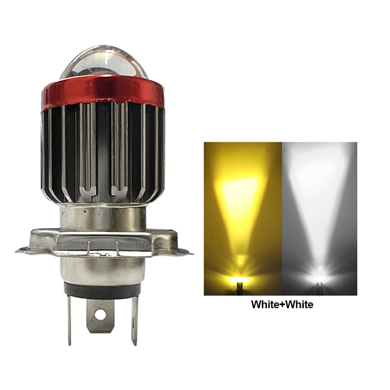 Farol LED Para Motocicleta 12-80V H4 BA20D Lente Bicolor Lâmpada De Neblina Scooter De Feixe Alto E Baixo