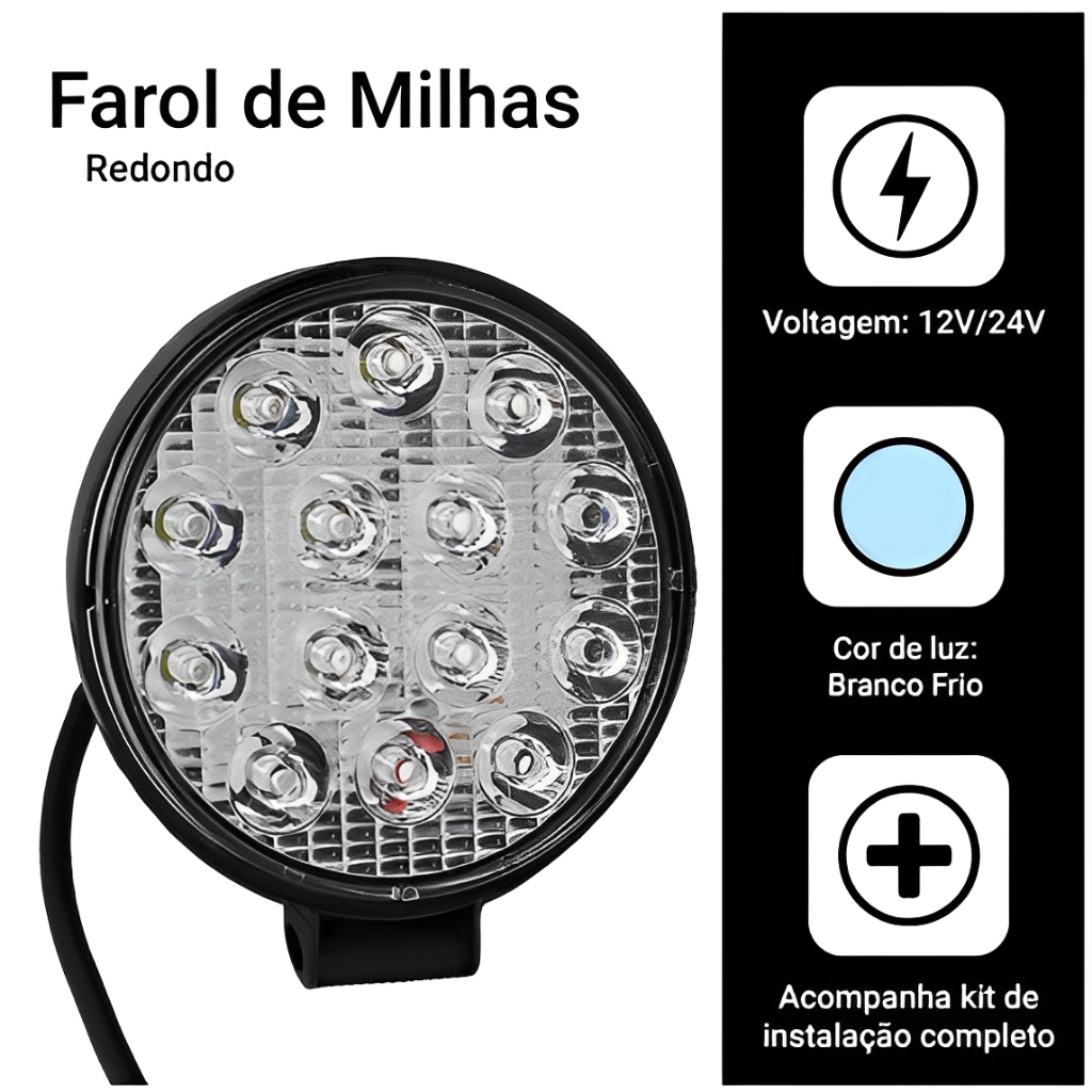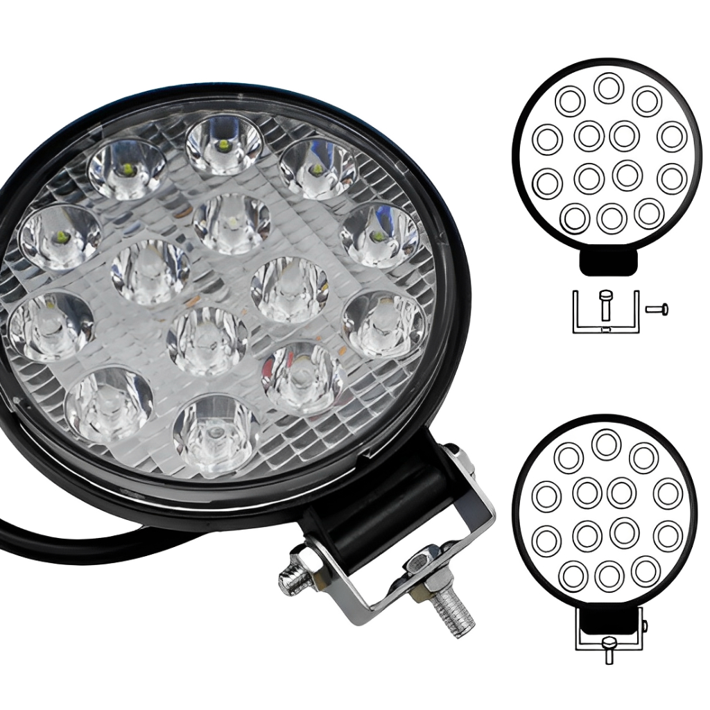 Farol Milha 14 Leds 42w 12v/24v Redondo Off-road 6000-6500k