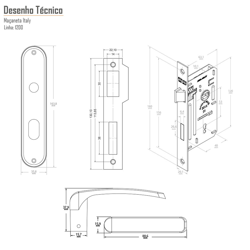Fechadura 1200 Italy Interna Cromada - Silvana