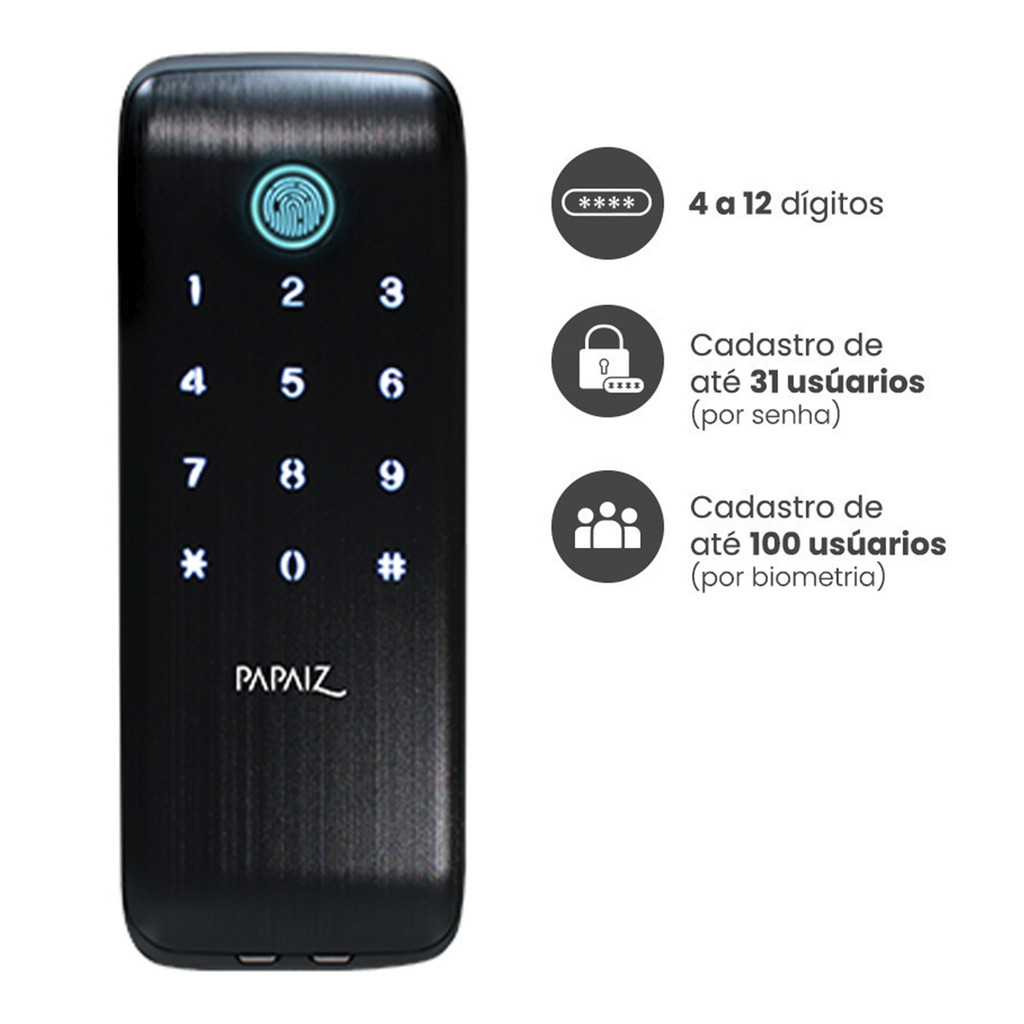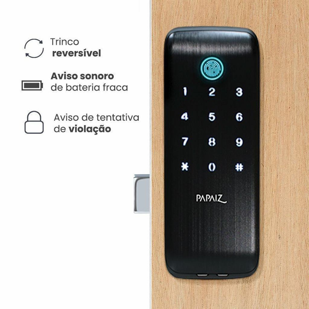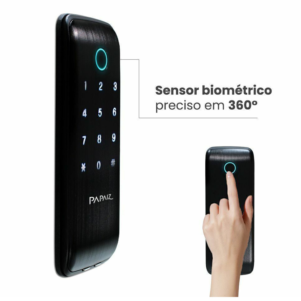 Fechadura Digital Sobrepor Biométrica Papaiz Sl125 B IP55 Externa Chuva Sol Maresia