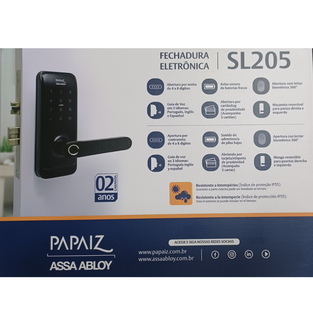Fechadura Eletrônica Smart Lock Sl205 Papaiz Externa Chuva IP55