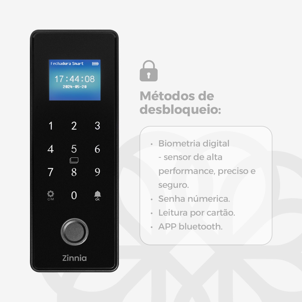 Fechadura Smart Zinnia Avalon, Preto, ZNS-AVL-BL01