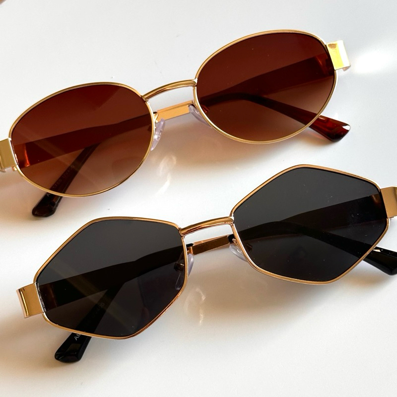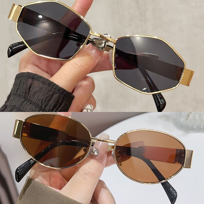 Feminino 2 Pares Y2K Estilo Retrô Diamante Decoração Oval Metal Moda Óculos