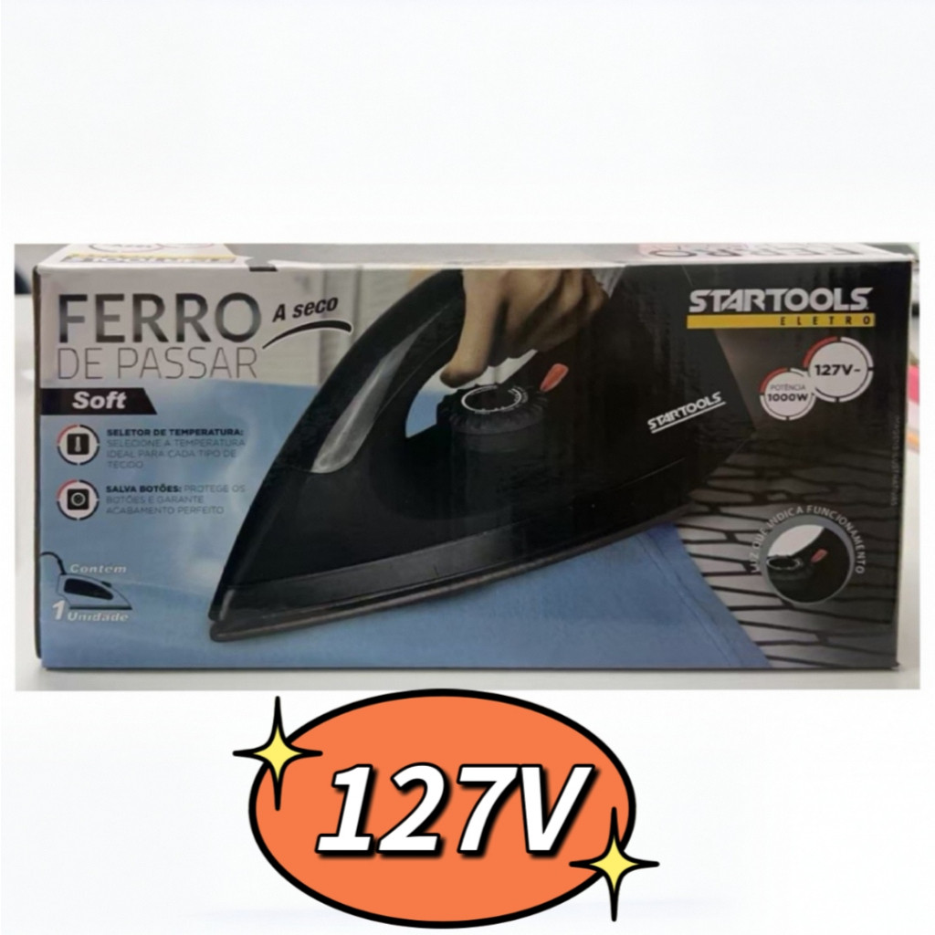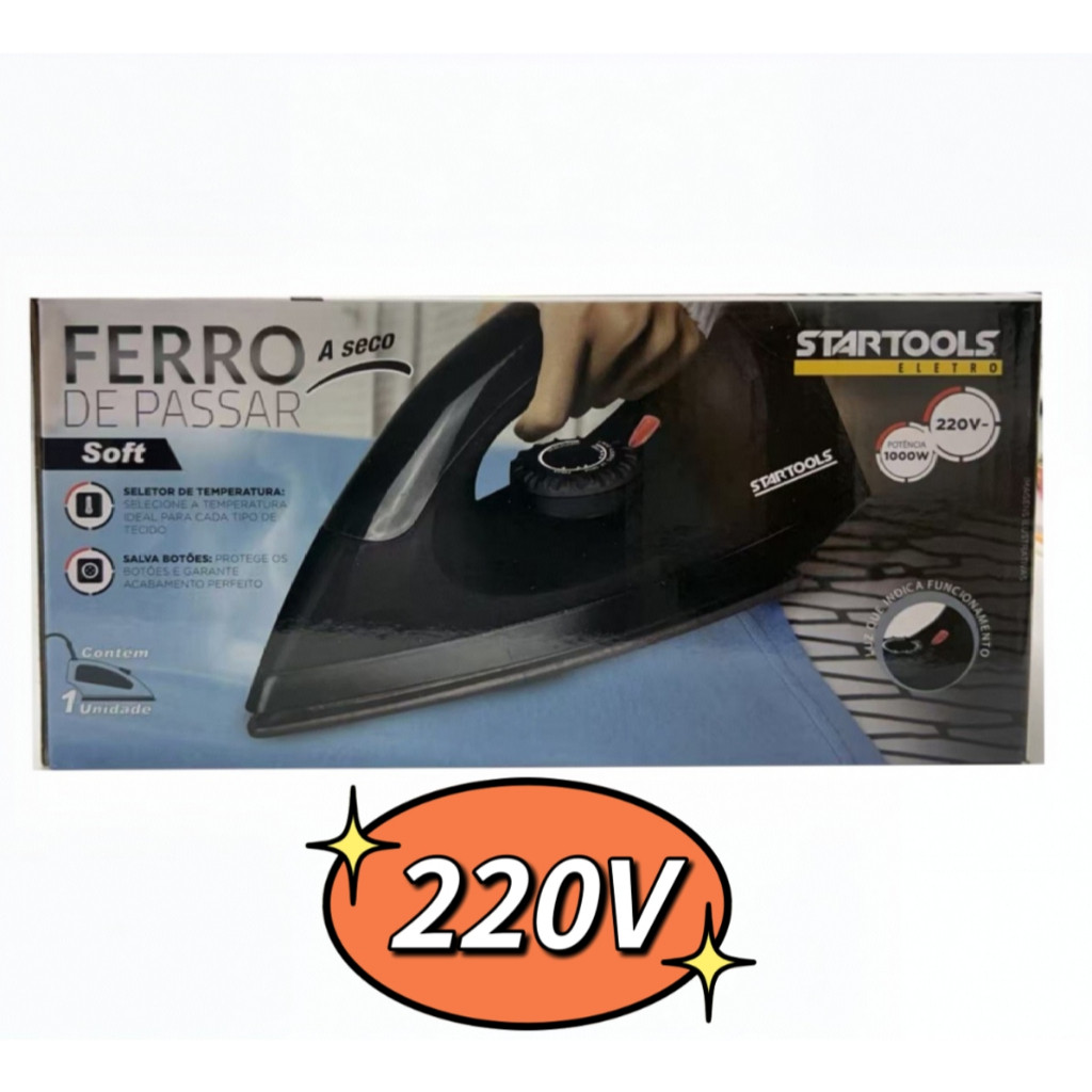 Ferro De Passarr A Seco Premium 127V OU 220V 1000W Com LED Indicativo