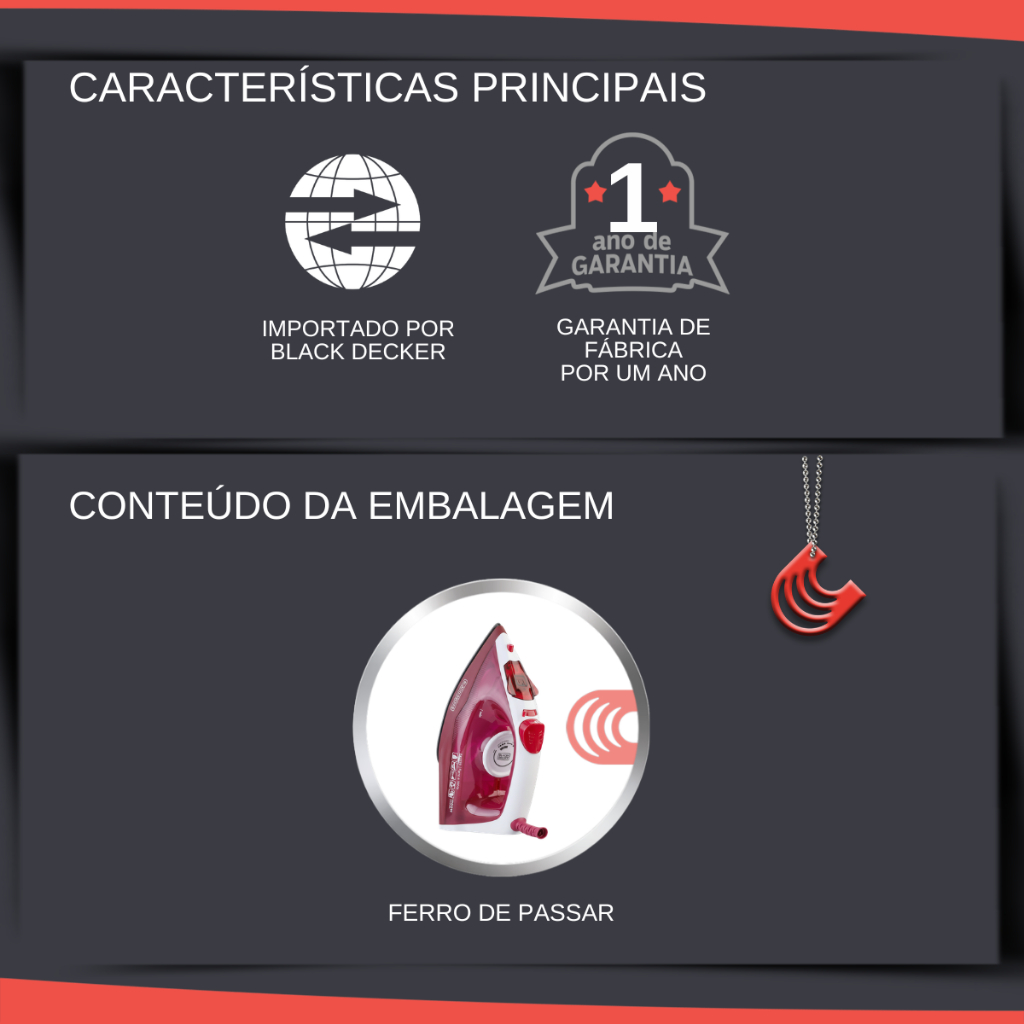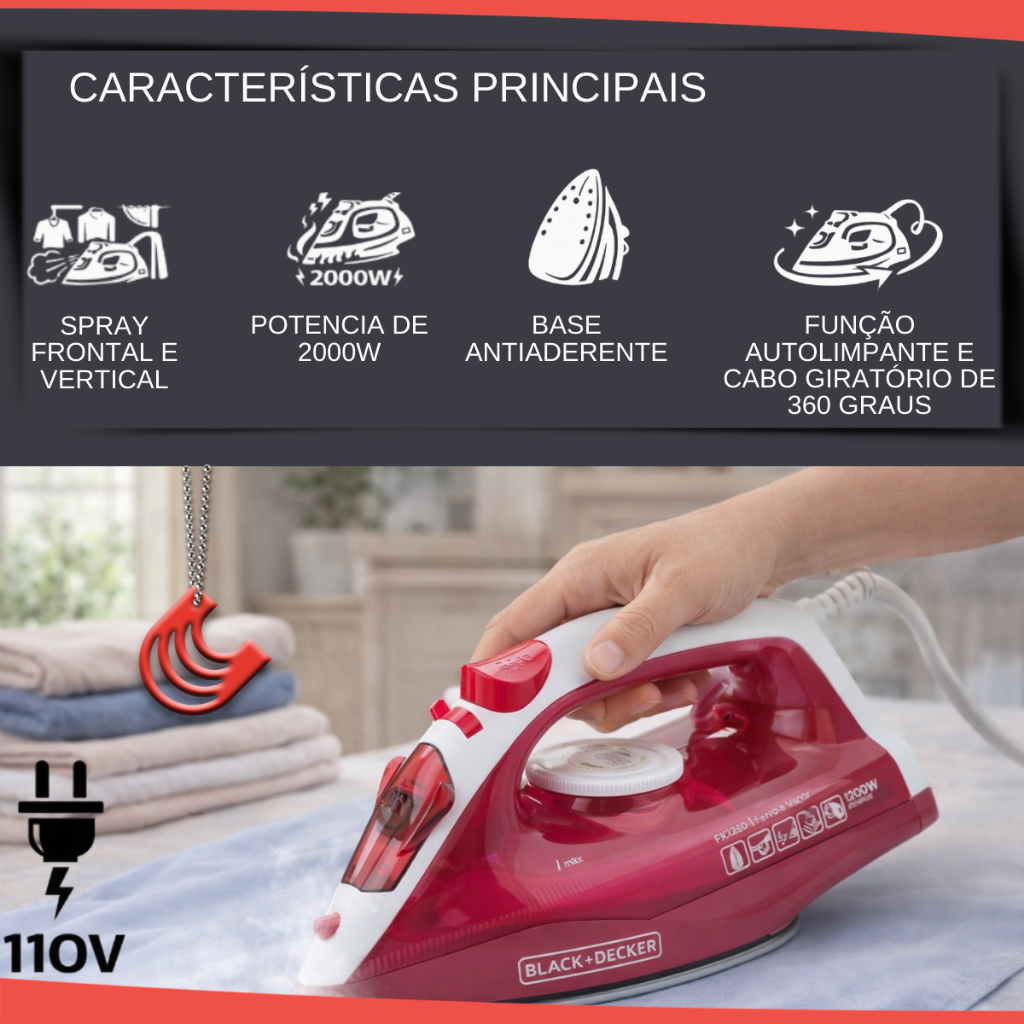 Ferro de Passar 110V C/Base Anti Aderente / Passador de Roupa a Vapor Black Decker