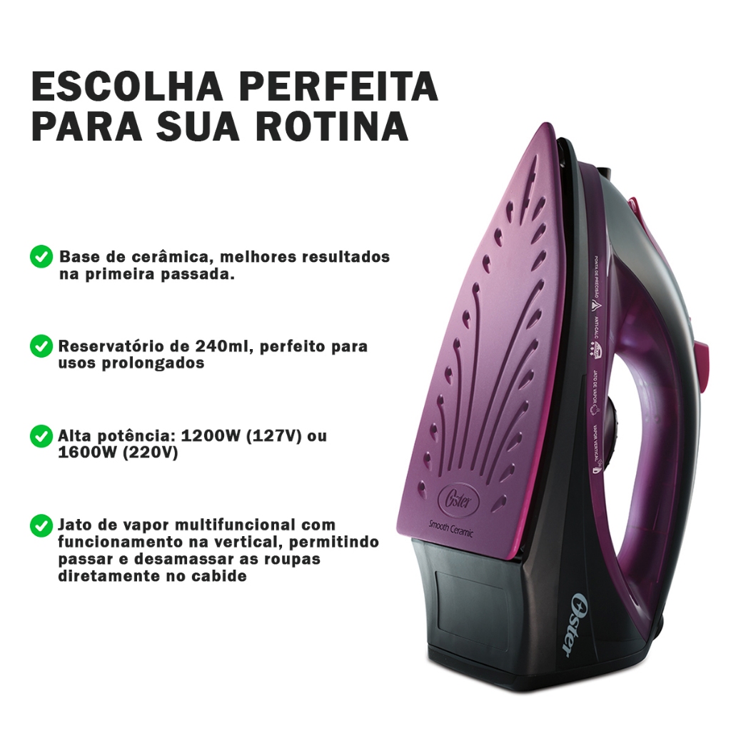 Ferro de Passar Roupa a Vapor Cerâmica GCSTBS5956 Preto e Roxo - Oster