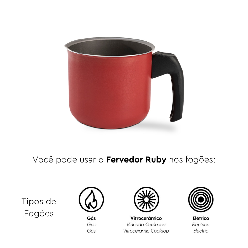 Fervedor Leiteira Brinox Ruby 1,25 Litros Vermelho