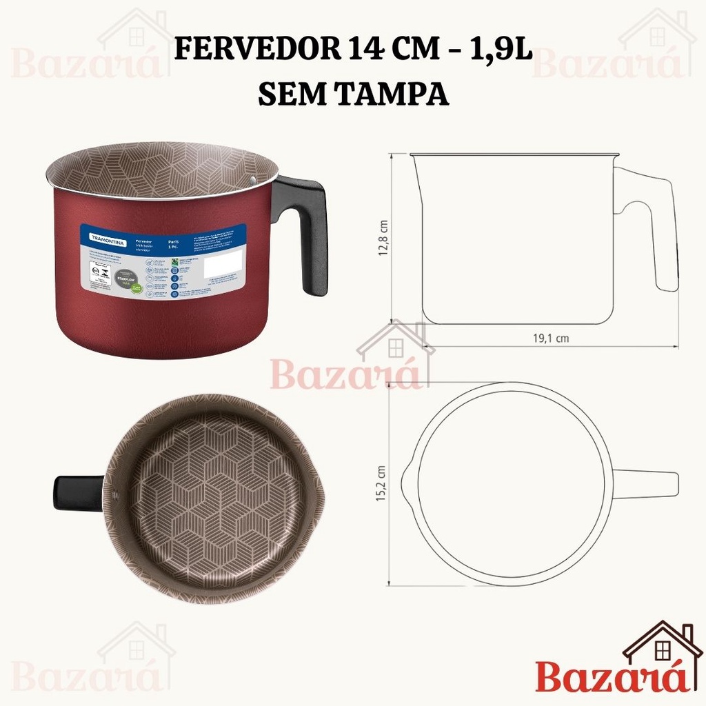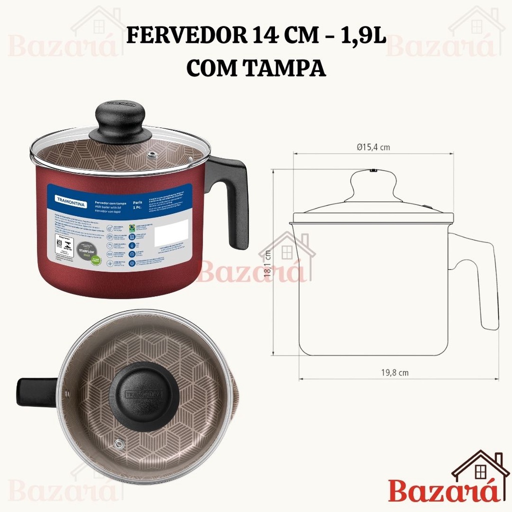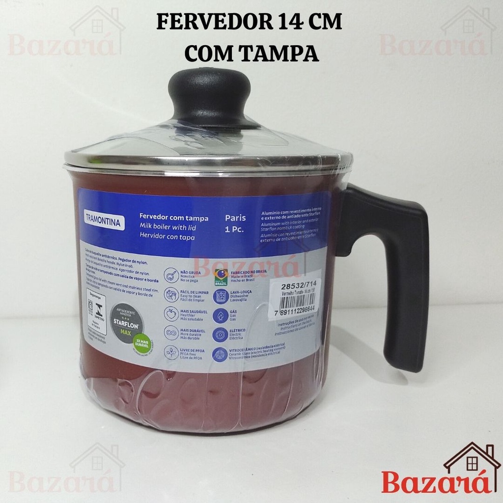 Fervedor Tramontina 12 cm/1,2L, 14 cm/1,9L ou 16 cm/2,7L Paris Leiteira Antiaderente