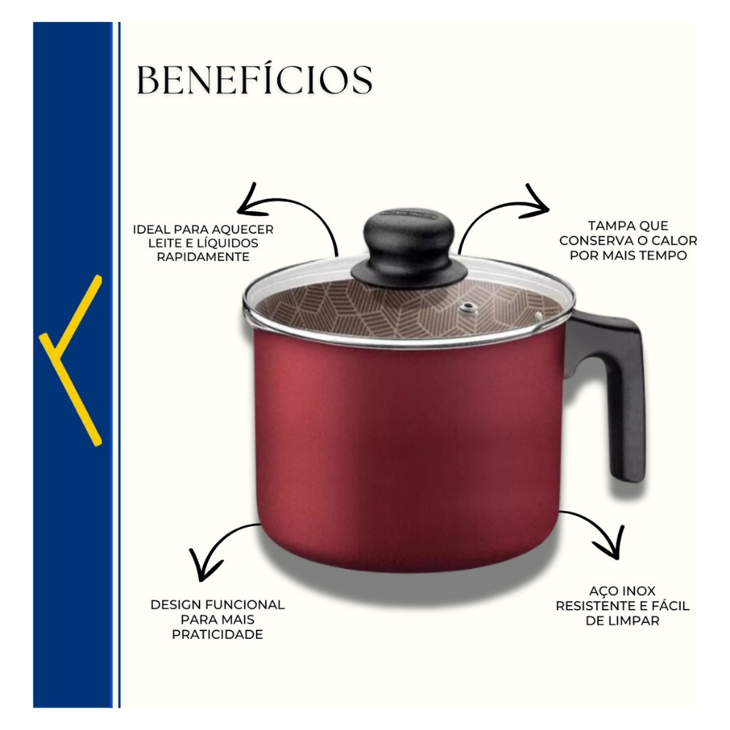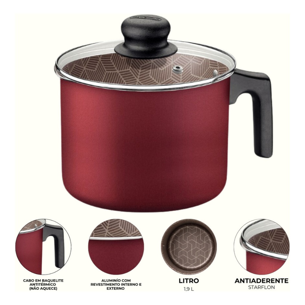 Fervedor Tramontina Paris Aluminio Antiaderente Satarflon Max Vermelho com Tampa 1,9L