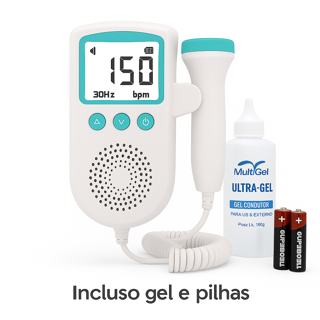 Fetal Doppler Ultrassom Ouvir Batimentos Bebe Gravida + Gel + Pilhas - Envio Rápido