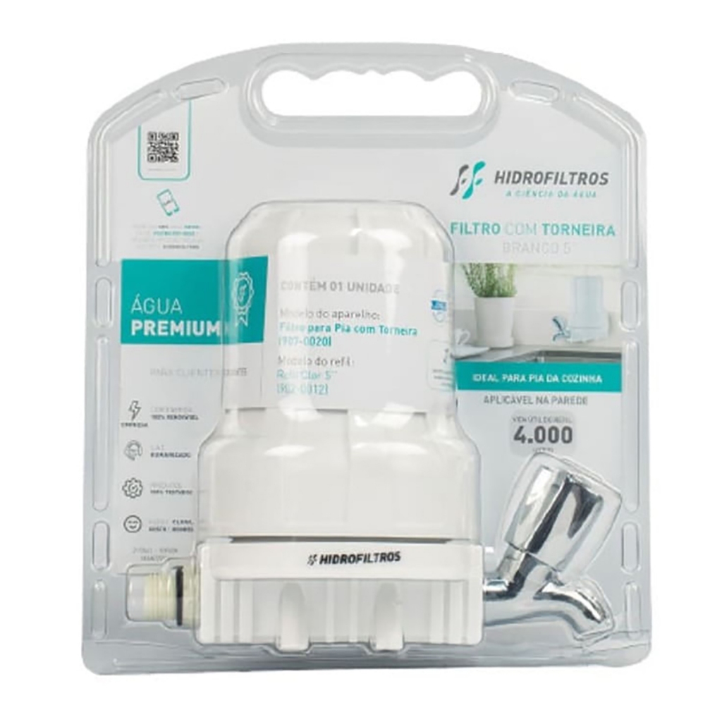 Filtro Branco com Torneira Hidrofiltros Blist 5" Limpa Cloro