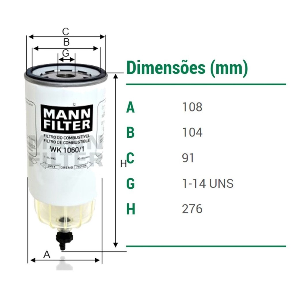 Filtro Diesel Separador Água para Scania 124 / PGR / S5 - 1998 a 2018 com Copo (WK1060/1) 'RACOR'