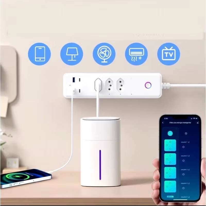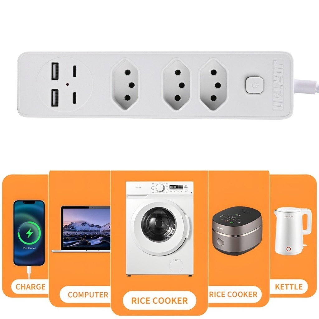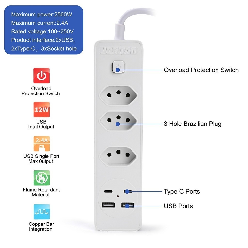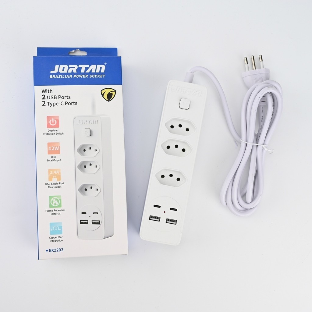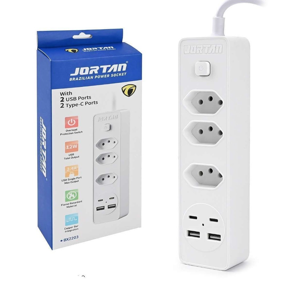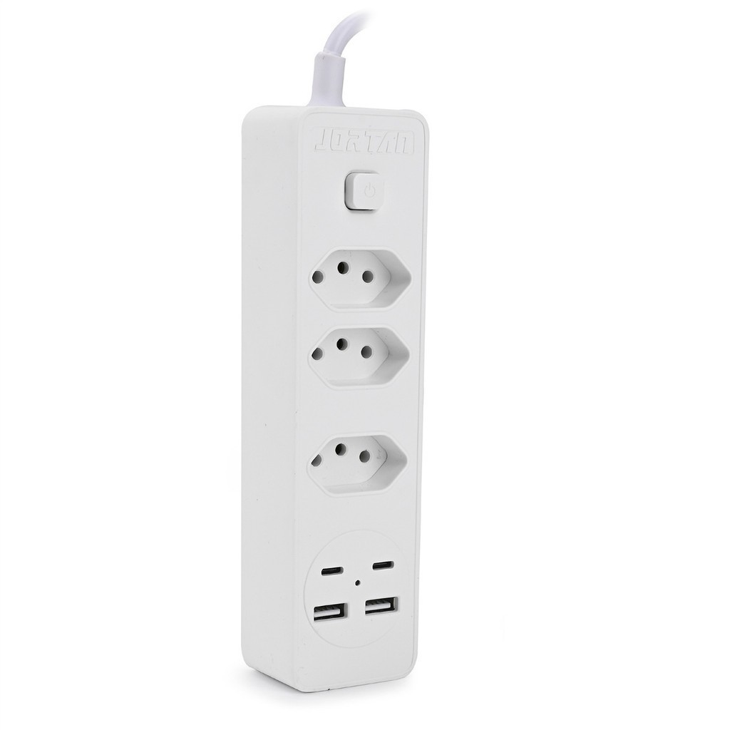 Filtro de linha Jortan de 2 m com 3 tomadas e proteção contra curto-circuito (DPS) 110/220 V marisa