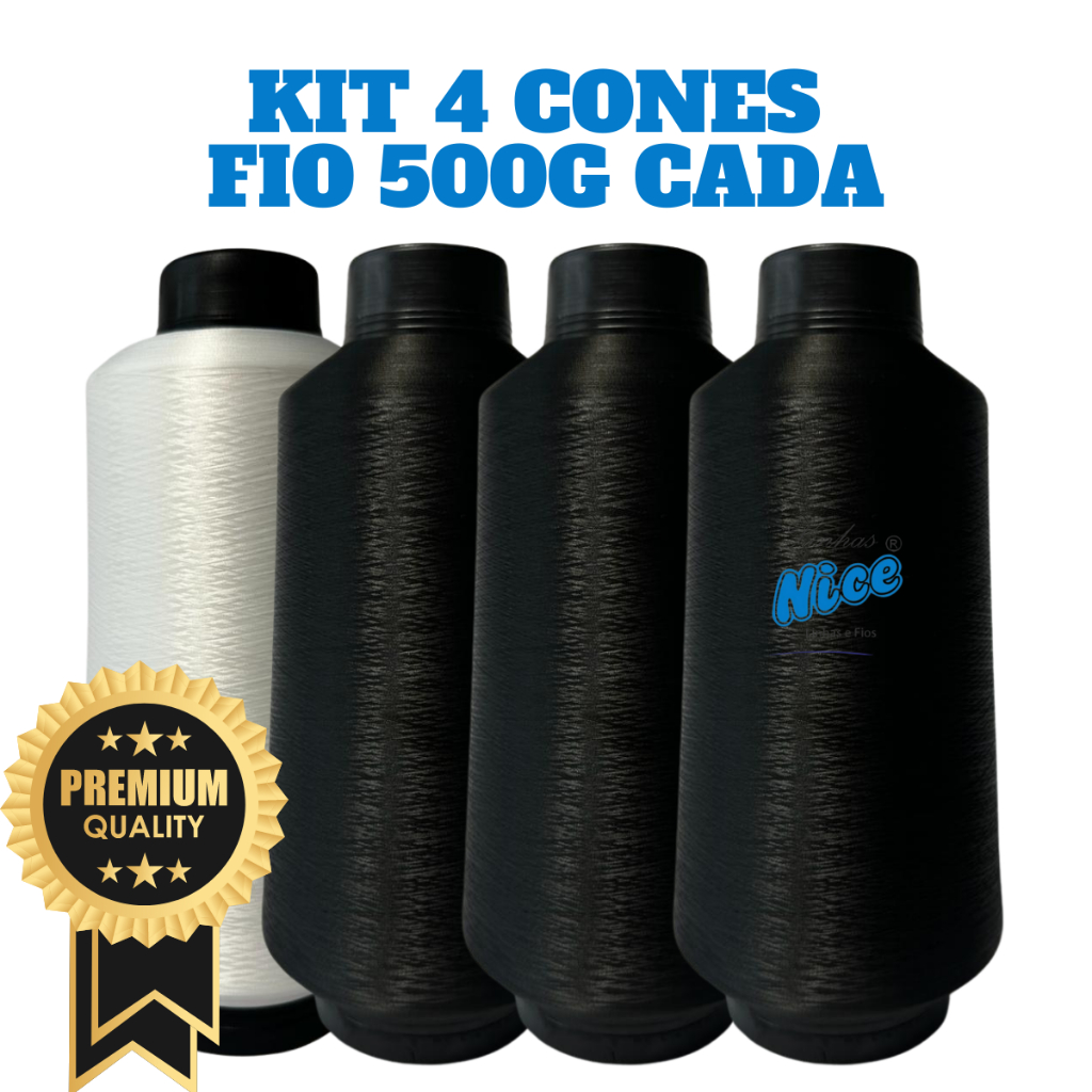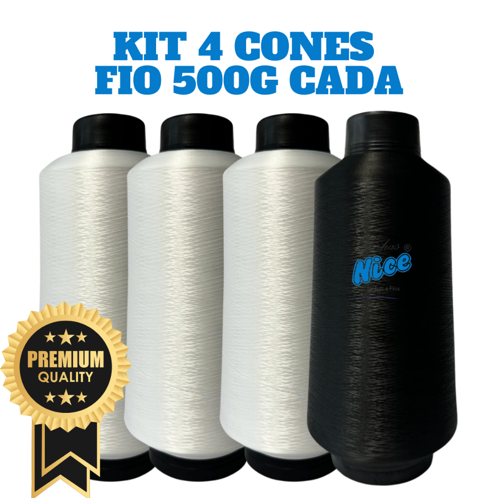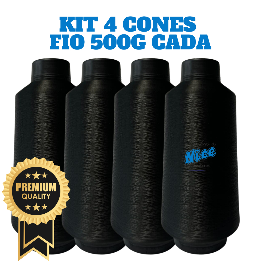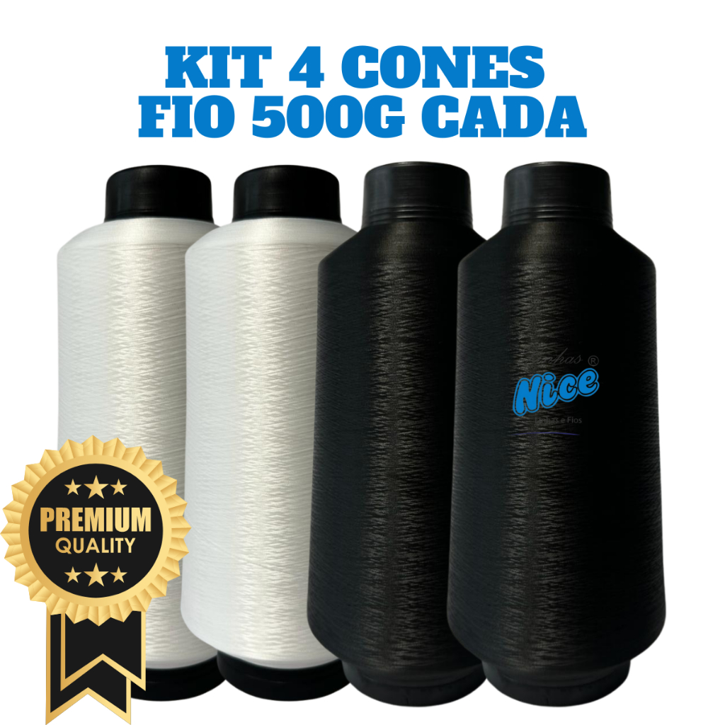 Fio Para Overloque - Kit 4 Fio 500G Cada - Preto, Branco - Fio para Costura Em Maquina Overloque