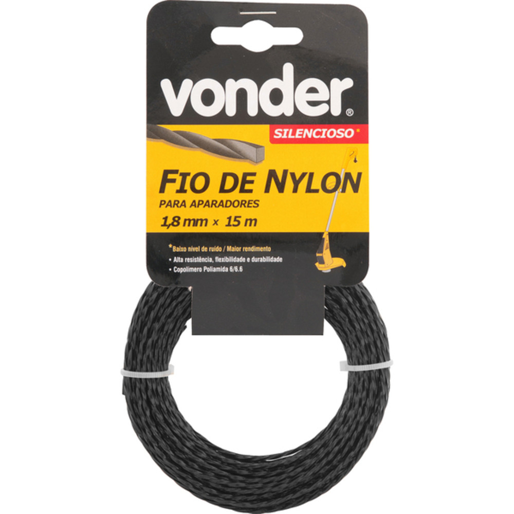 Fio de nylon 1,8 mm x 15 m modelo silencioso para aparador de grama - Vonder