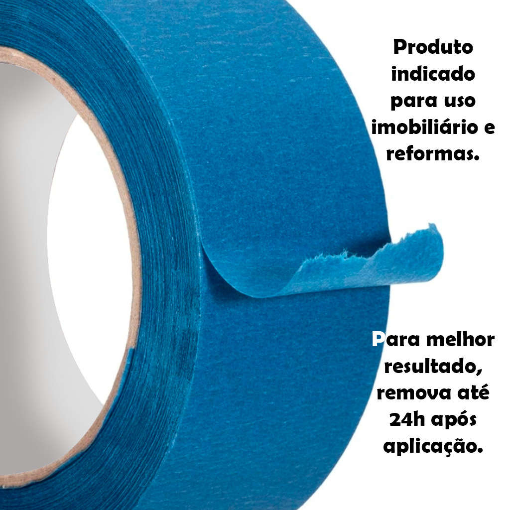 Fita Crepe Adesiva Azul Para Pintura Automotiva Parede Pintor Imobiliário Uso Geral Profissional