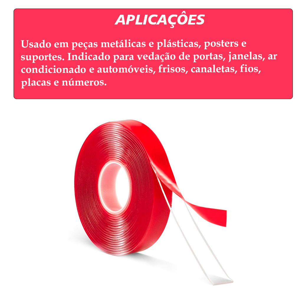 Fita Dupla Face Multiuso Automotiva Uso Interno Externo Alta Colagem Fixação Vários Tamanhos