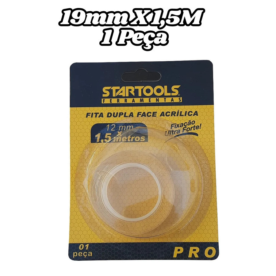 Fita Dupla Super Fixação 19mmx2m Ou 12mmx1,5m Startools Ultra Forte Acrílica Transparente Multiuso