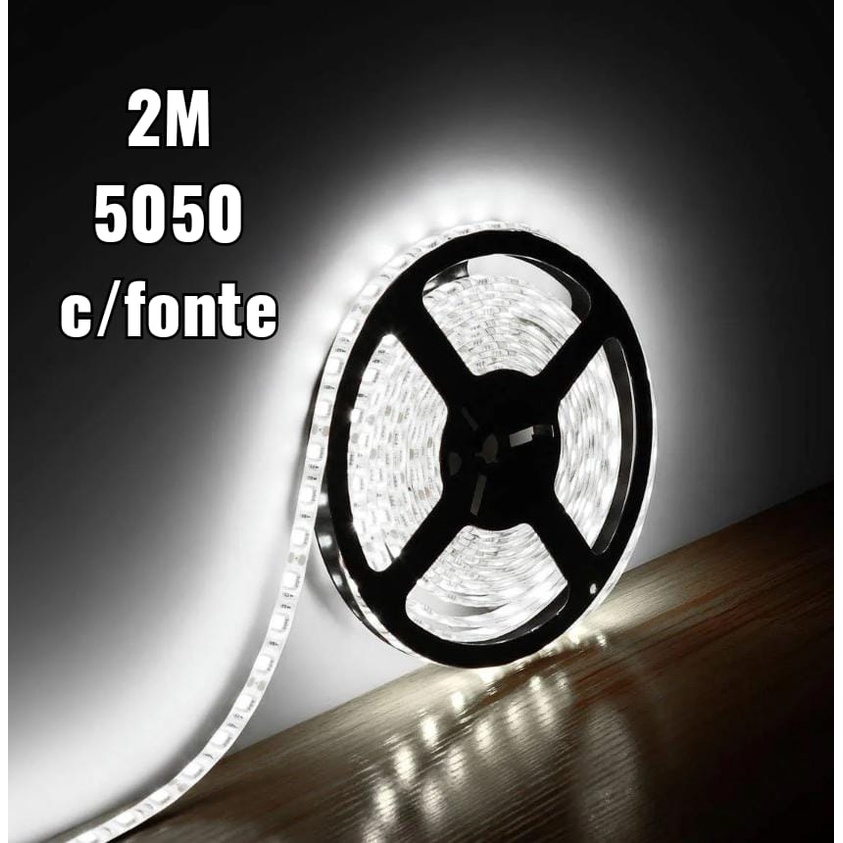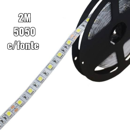 Fita Led 5050 Branco Frio 2 Metro + Fonte sem silicone