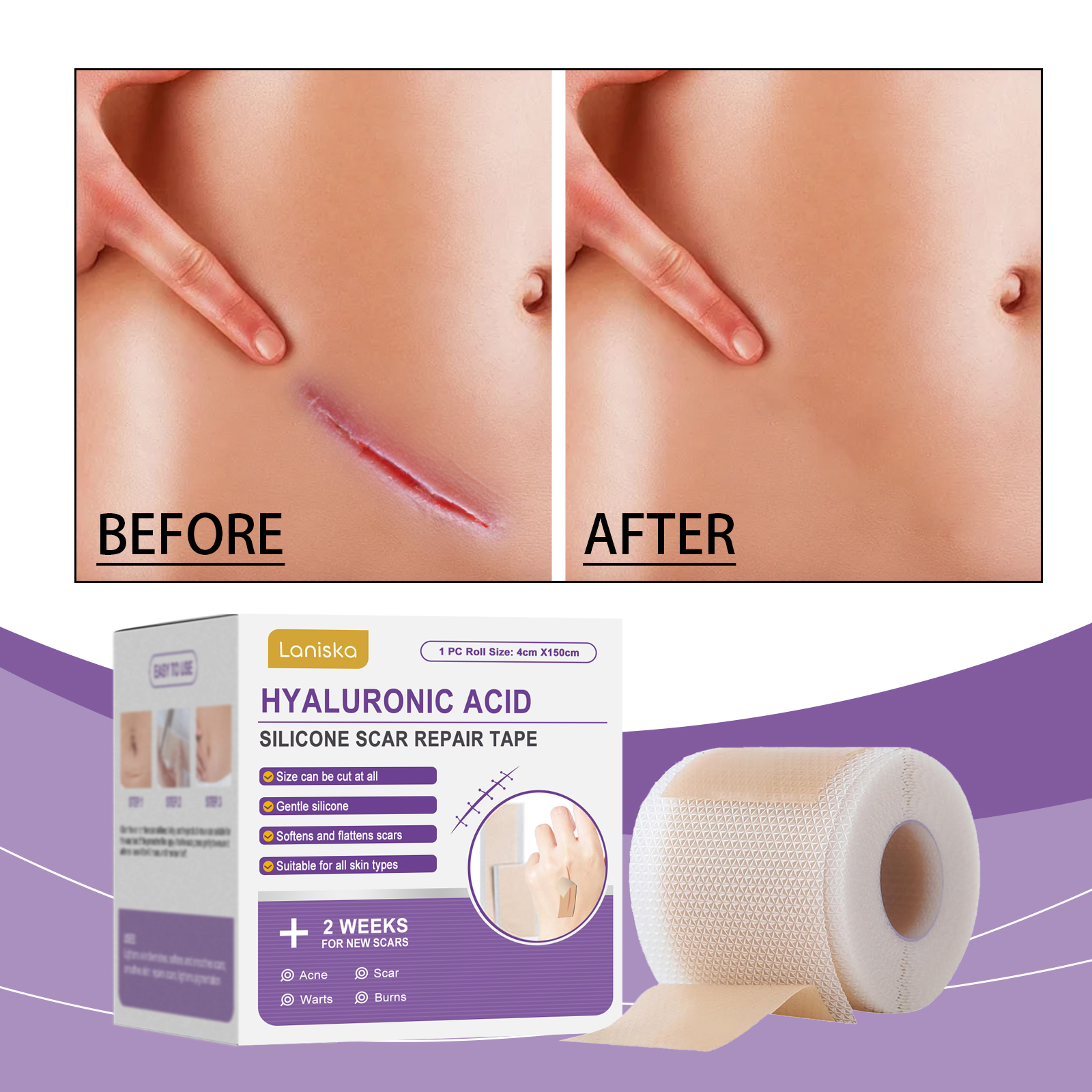 Fita de Reparo de Microagulhas de Ácido Hialurônico, Fita de Silicone para Cicatrizes, Fita de Silicone Reutilizável de
