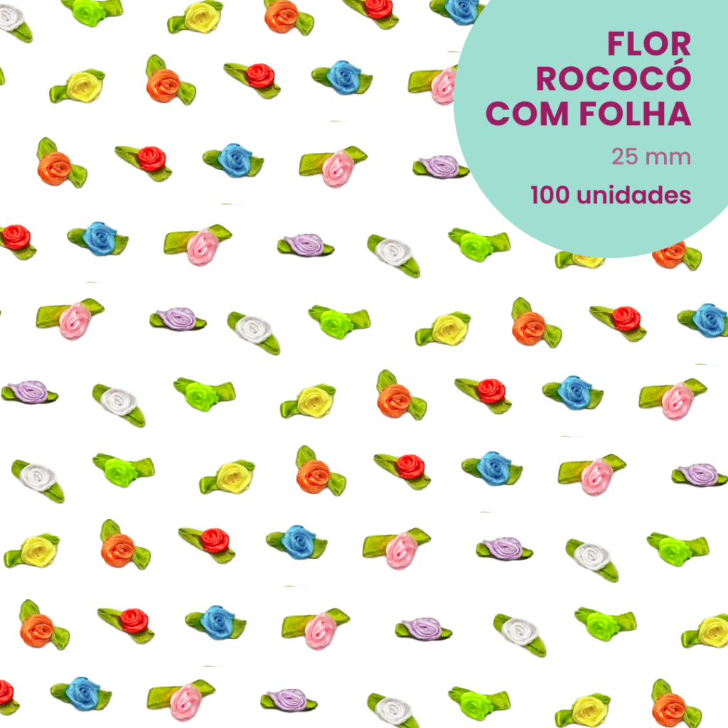 Flor Rococó com folha 25mm - 100 unidades