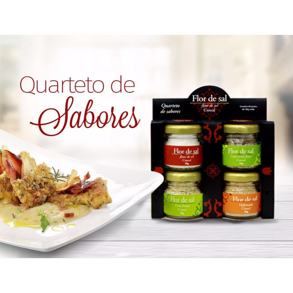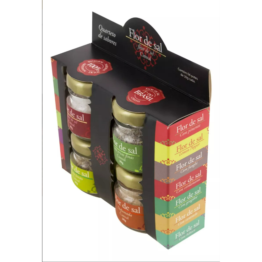 Flor de Sal Cimsal Quarteto Sabores Pimenta, Alho e Ervas Finas 4x30g