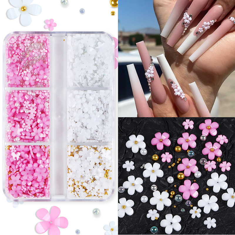 Flores 3d Em Estilos Mistos Com Strass, Rosa E Branca, Para Decoração De Unhas Diy E Capas De telefone