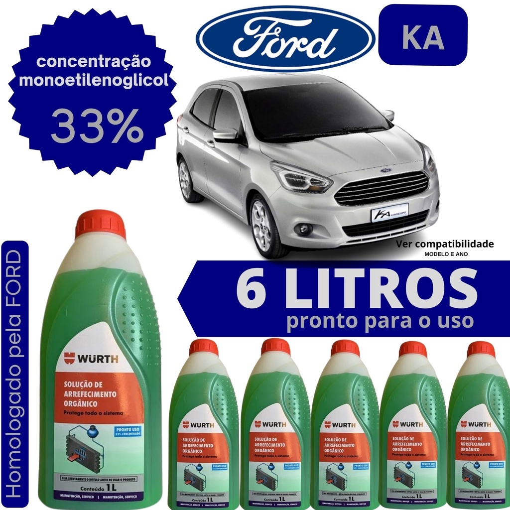 Fluído Aditivo Radiador Verde Wurth - Ford Ka - 6 Litros Pronto para o uso