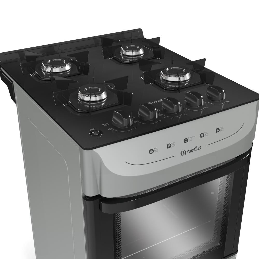 Fogão 4 Bocas Com Forno Mueller com Mesa de Vidro Bivolt Titânio - MFV4BB