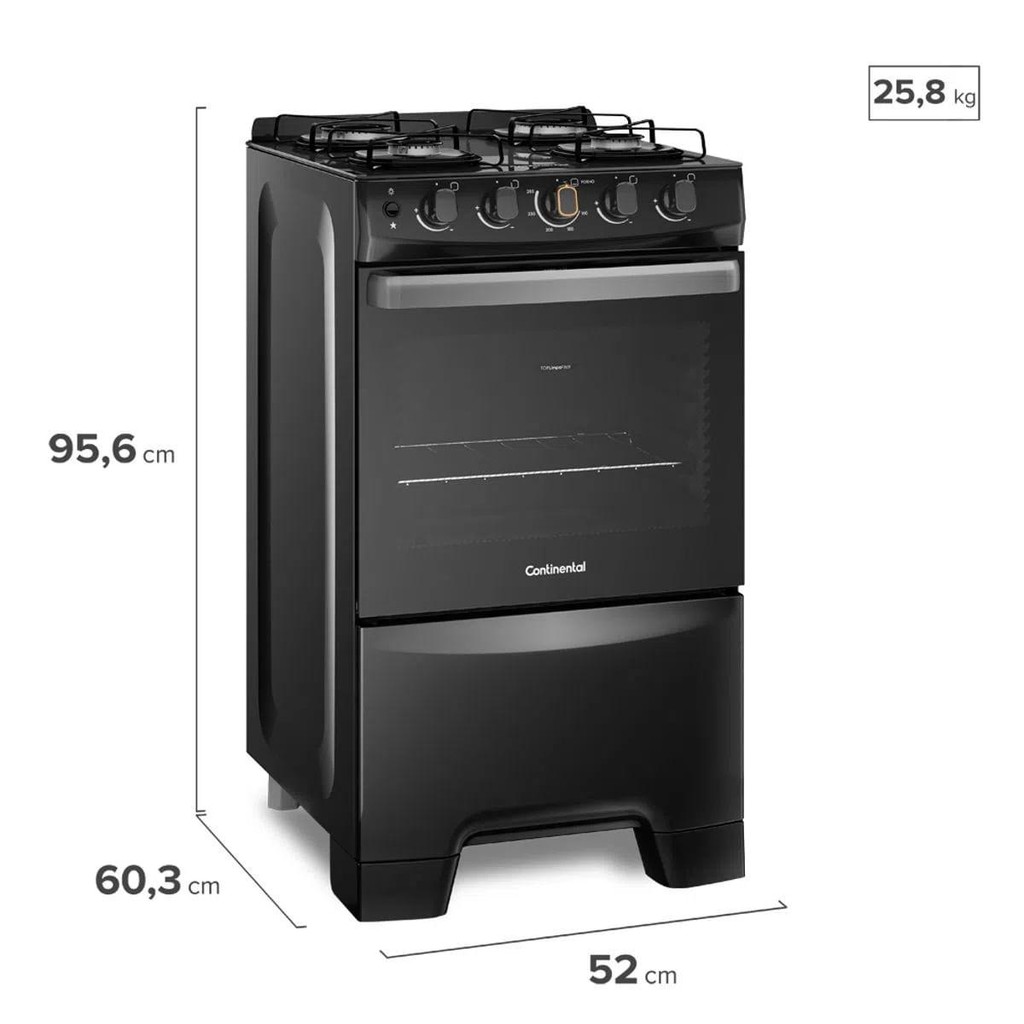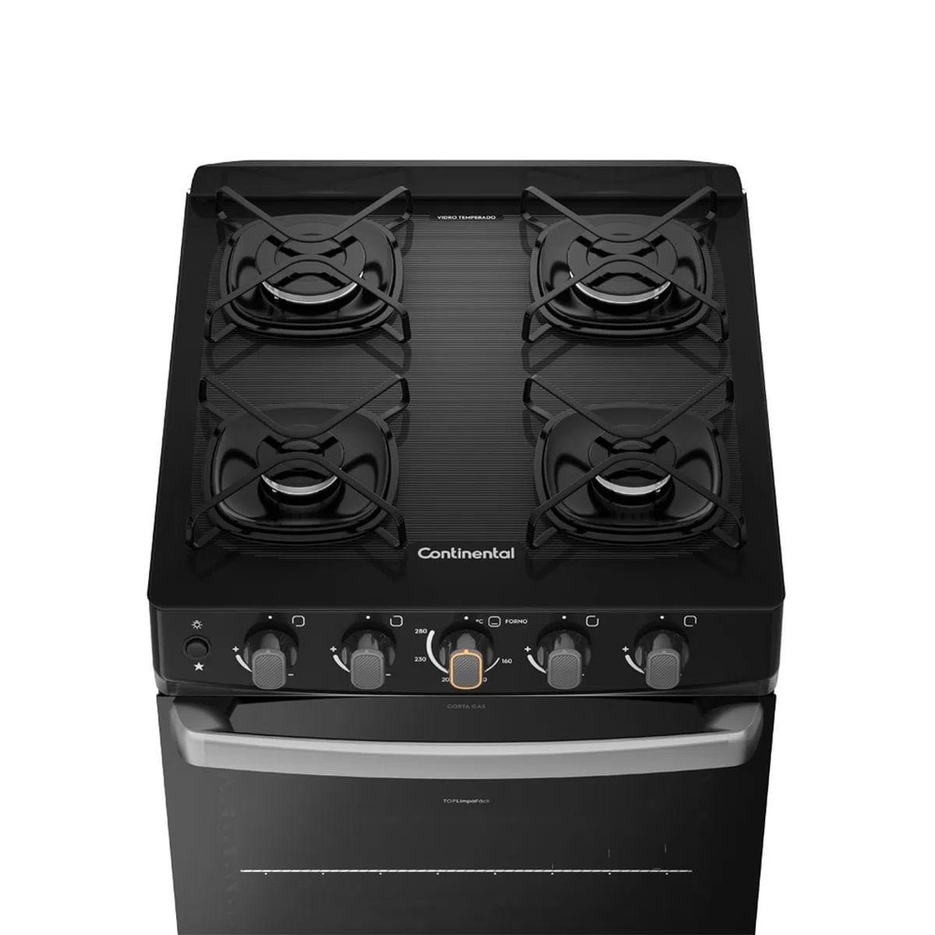 Fogão 4 Bocas Continental Preto Automático com TOPLimpaFácil e Mesa de Vidro (FC4FP)