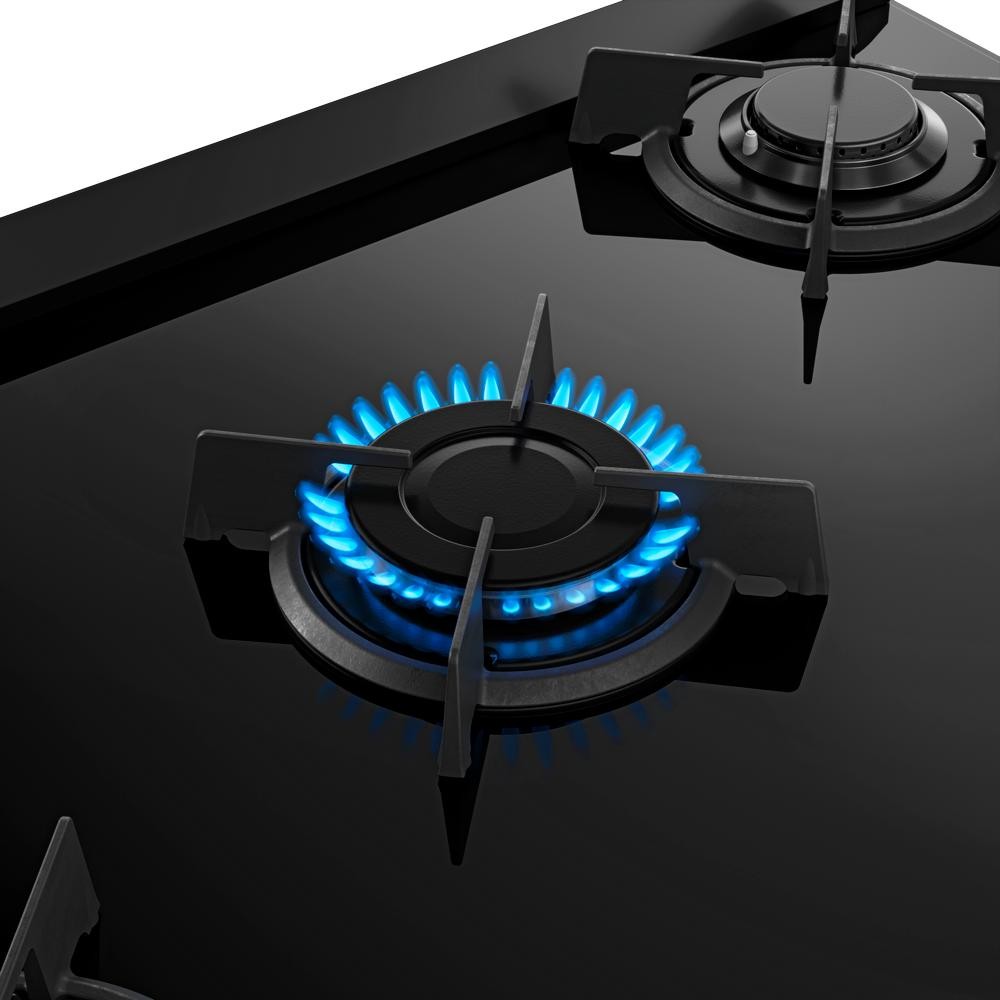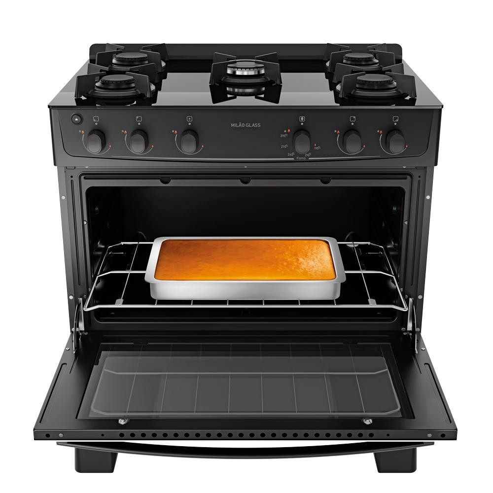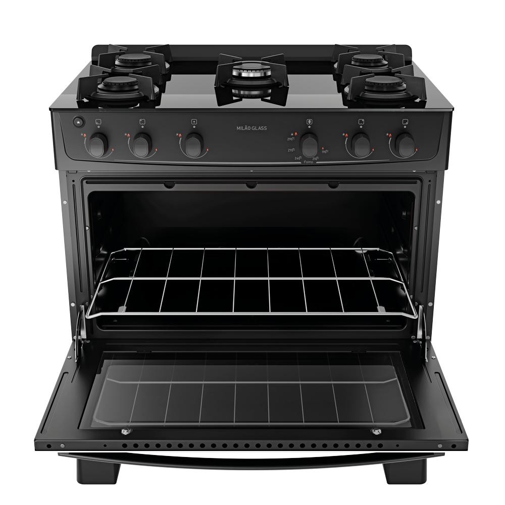 Fogão 5 Bocas Atlas Milão Glass Preto Mesa de Vidro Bivolt