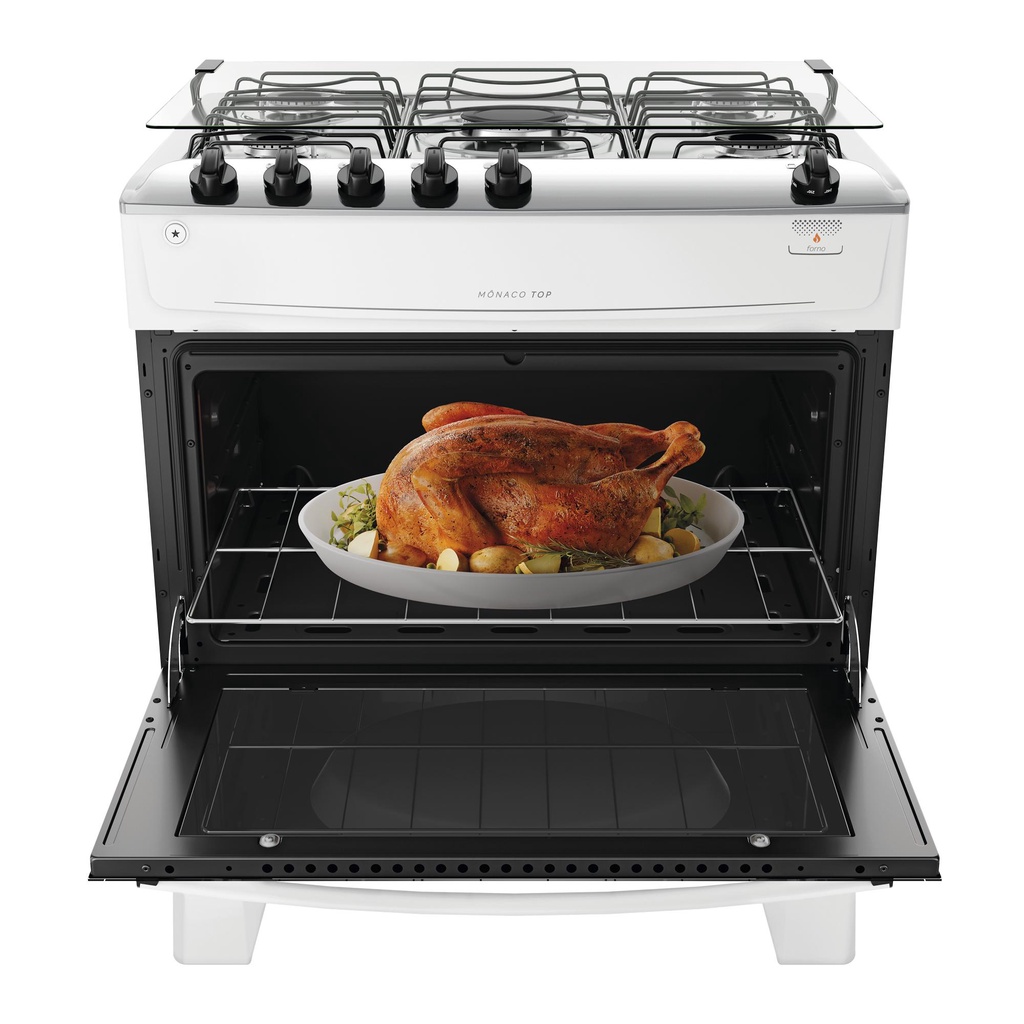 Fogão 5 Bocas Branco com Mesa Inox Atlas Mônaco Top Bivolt