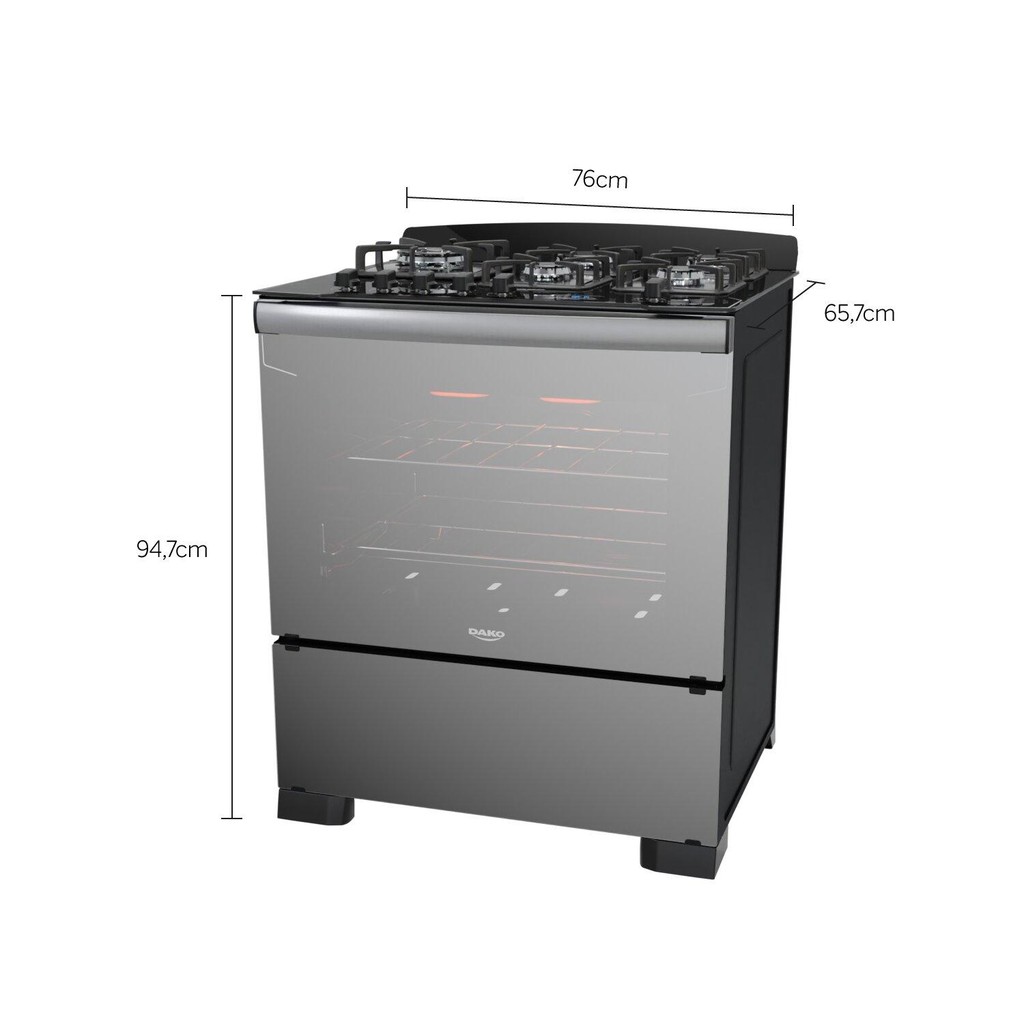 Fogão 5 Bocas Dako Diplomata Glass Grill Style Timer Bivolt