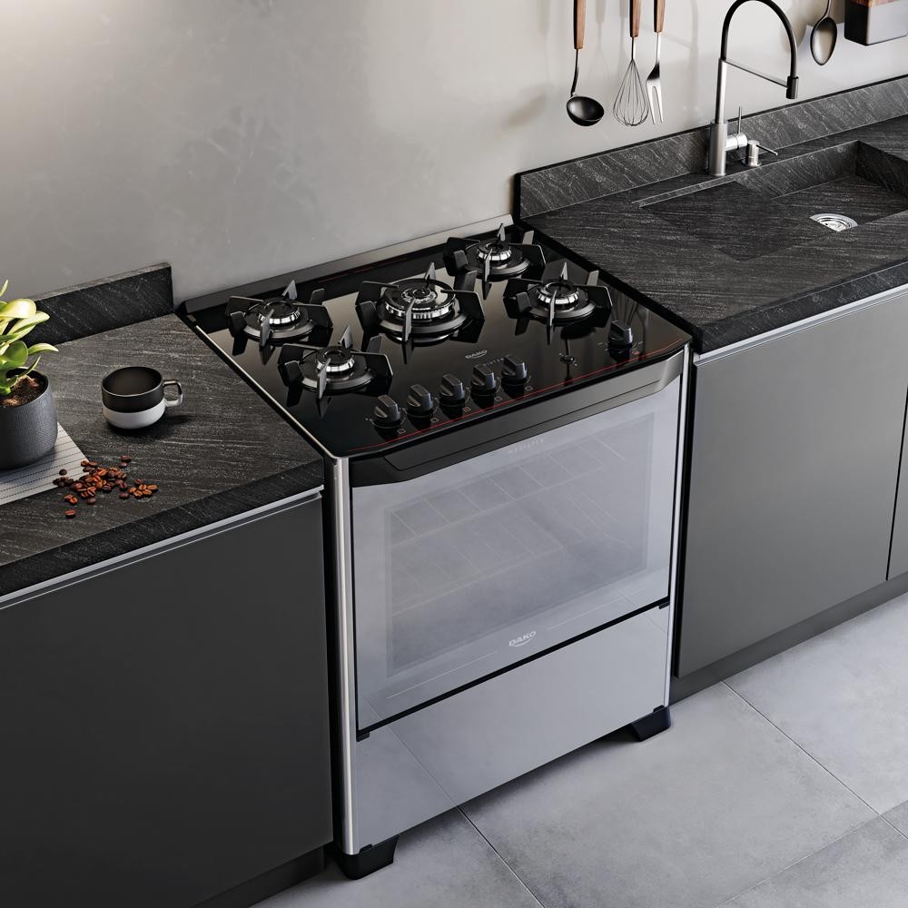 Fogão 5 Bocas Dako Magister Style Mesa de Vidro Bivolt