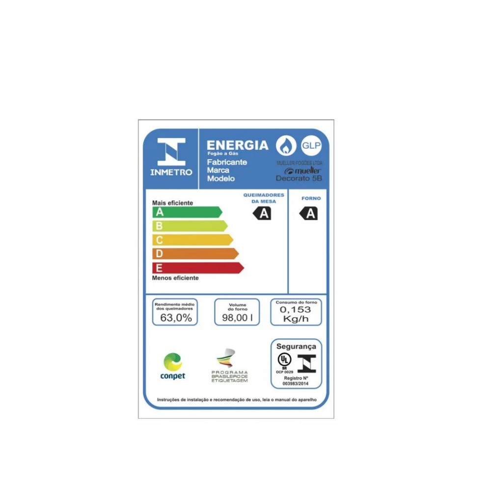 Fogão 5 Bocas Mueller Decorato Vetro G3