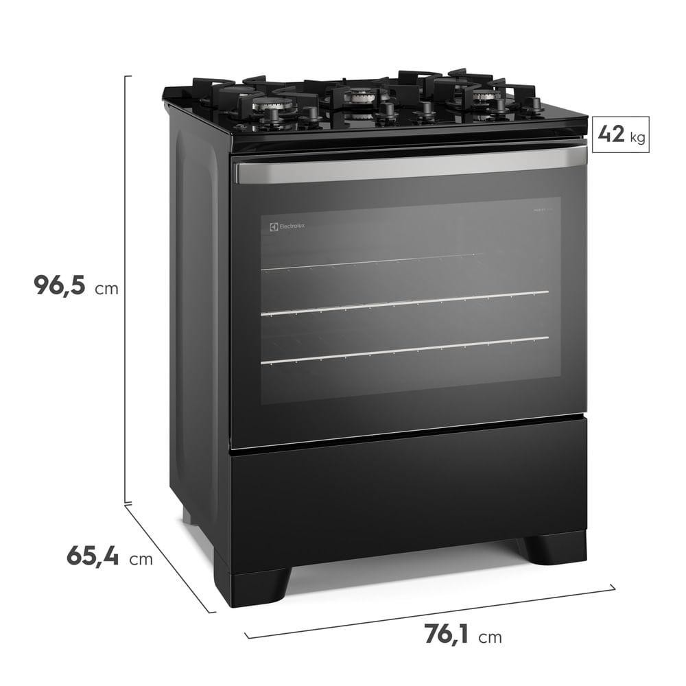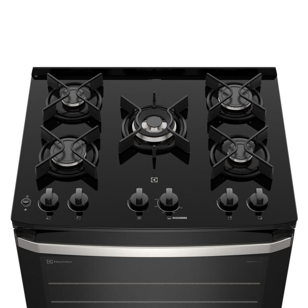 Fogão 5 bocas Electrolux Preto Efficient Mesa de Vidro, PerfectCook e Grades de Ferro (FE5GB)