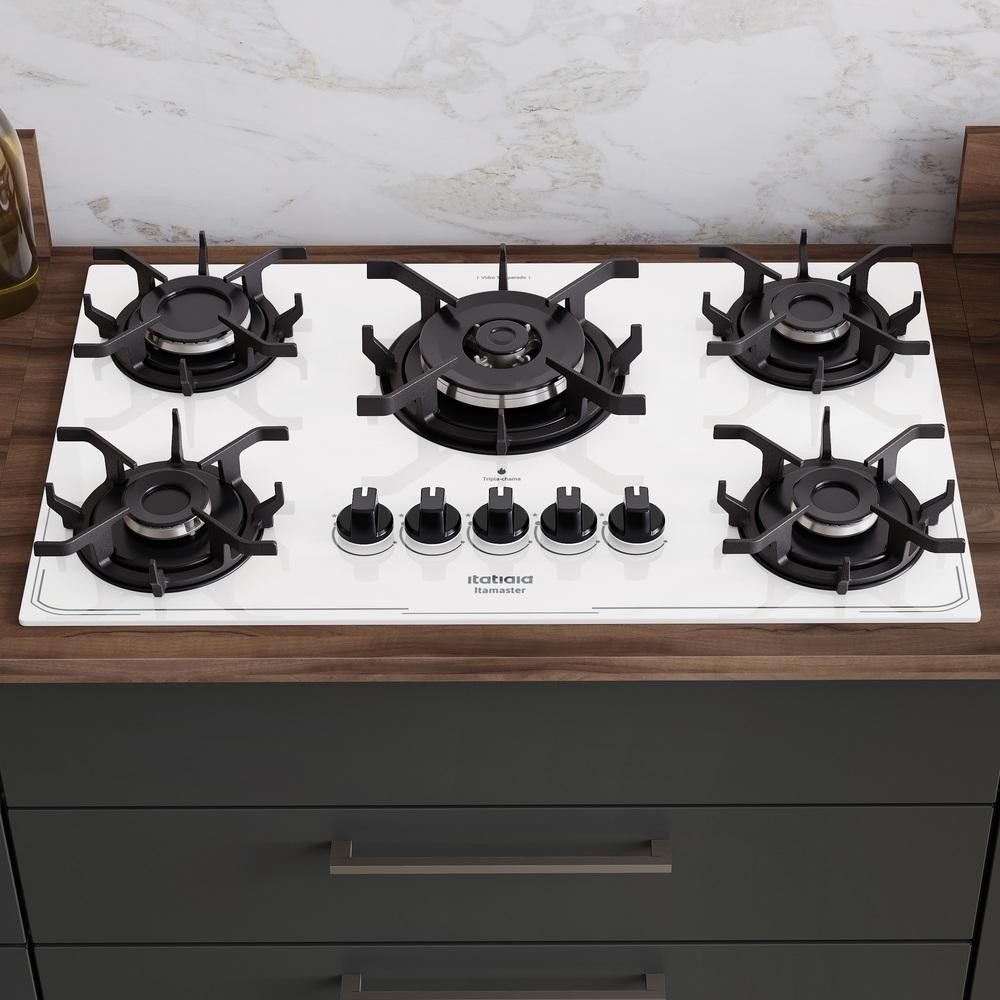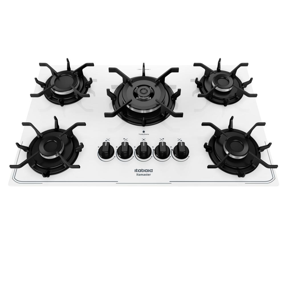Fogão Cooktop 5 Bocas Branco Gás Itamaster Itatiaia bivolt Tripla Chama Trempe Ferro e Mesa de Vidro