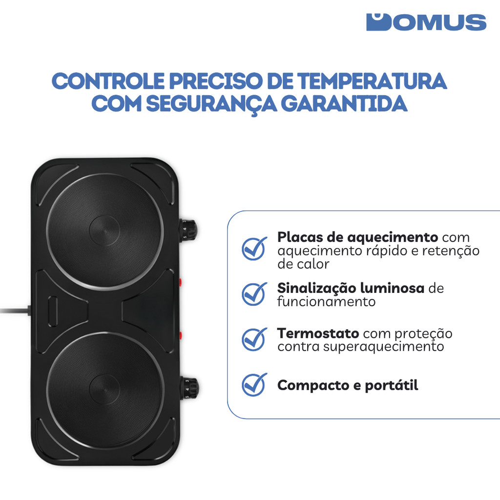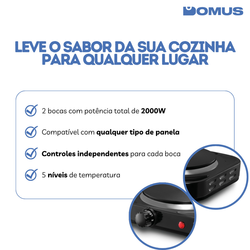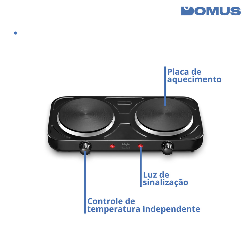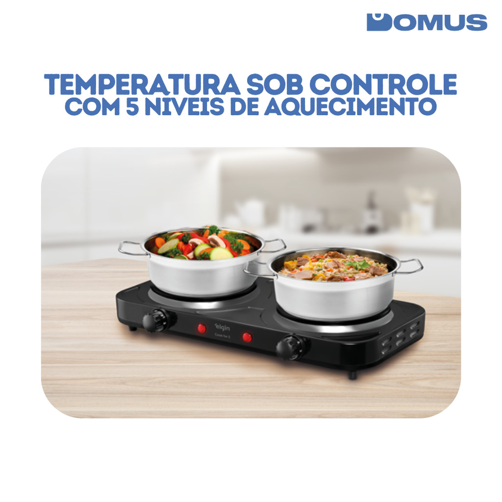 Fogão Cooktop Elétrico 2 Boca 5 Temp Double Cook 2000W FG02 Elgin