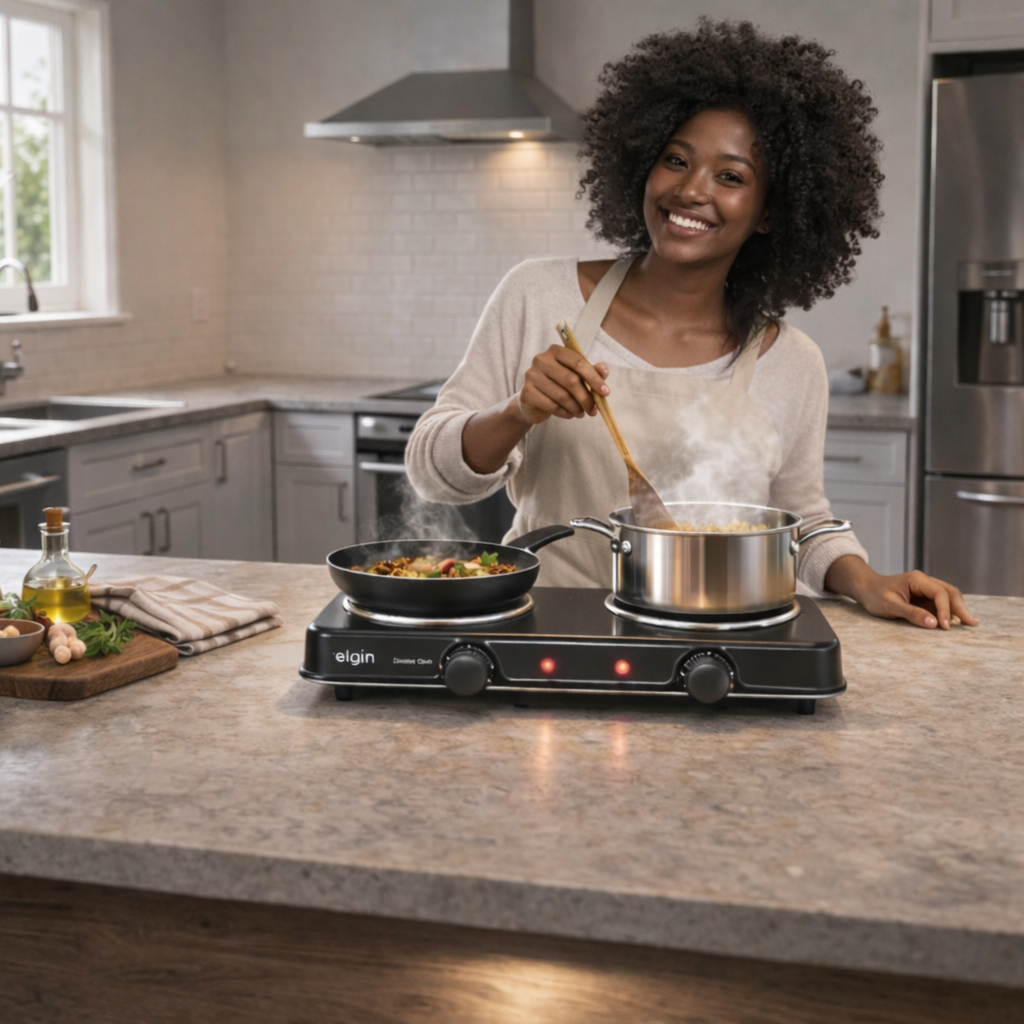 Fogão Elétrico 2 Bocas Elgin 2000W Portátil com Aquecimento Rápido Excelente para Camping e Obra