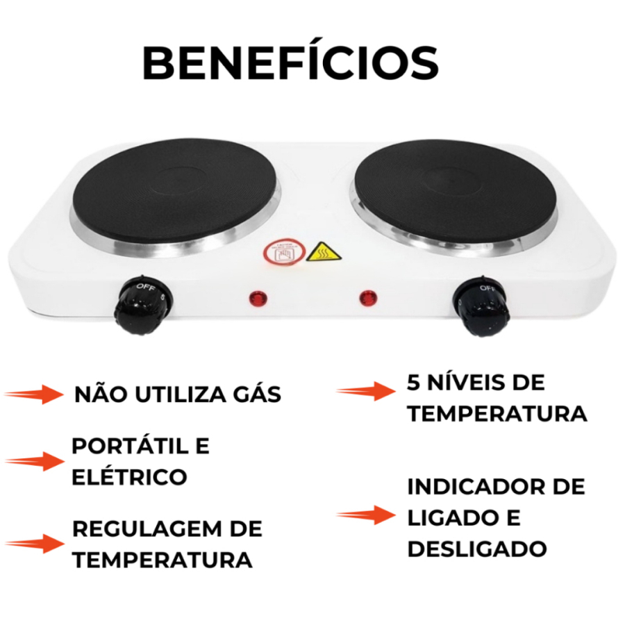 Fogareiro Fogão Elétrico Automático 2 Bocas 220V 110V 1000W 2000W e 1 Boca Portátil