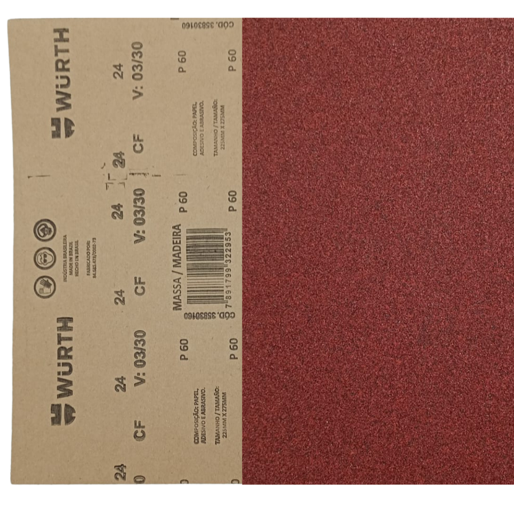 Folha de Lixa Massa Madeira Parede 60 80 100 120 150 180 220 1un Wurth