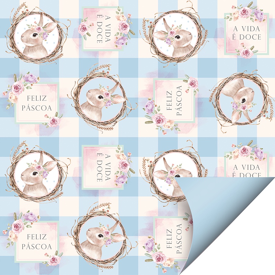 Folha para Ovos de Páscoa Double Face Coelha Serena Azul 69x89cm - 05 unidades - Cromus - Rizzo