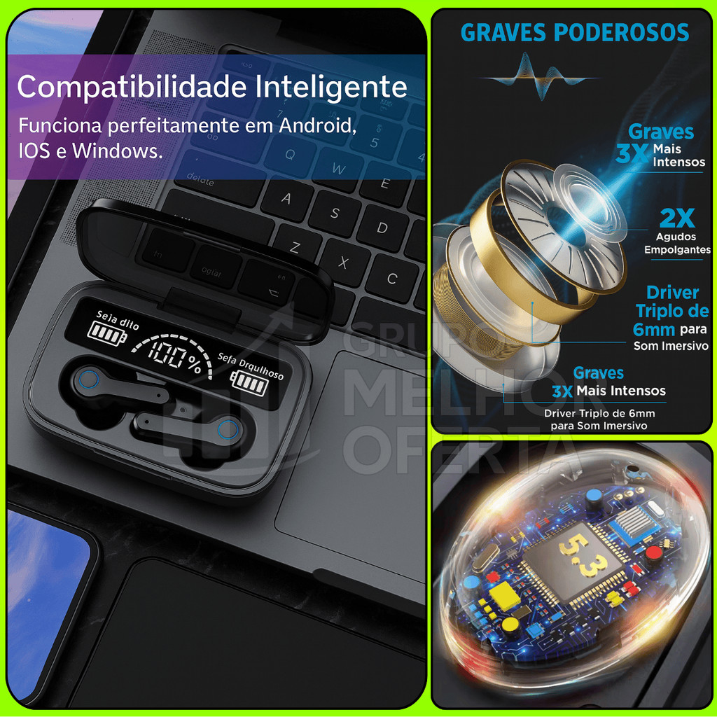Fone Bluetooth Gamer sem fio case de carregamento magnético 3500mah Power bank a prova D'água IPX7