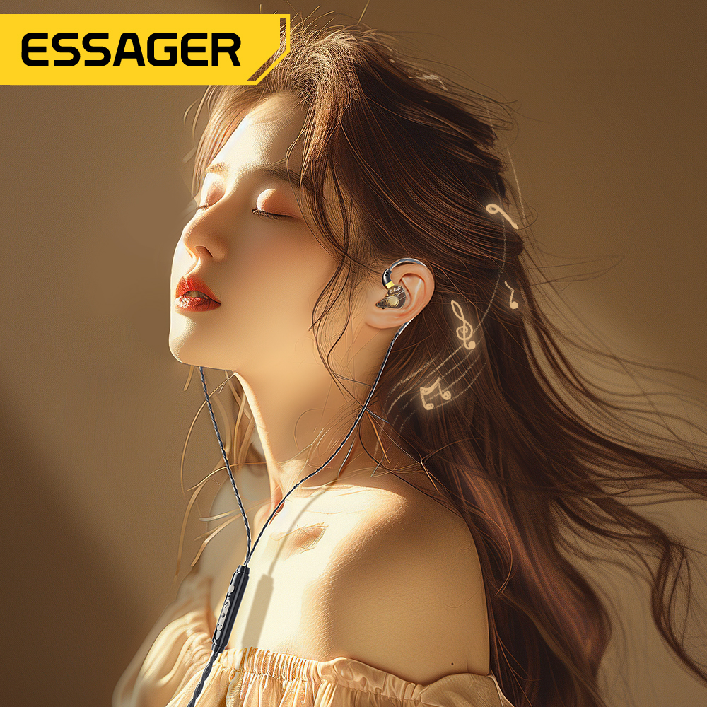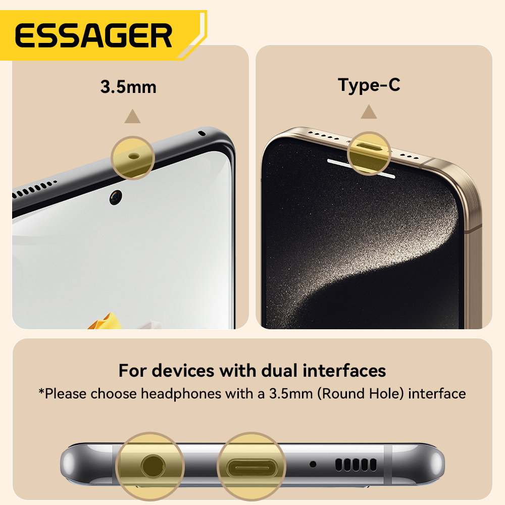 Fone De Ouvido Com Fio Essager 3.5mm Tipo C Chip Digital Controle De Microfone Para iPhone 15 Android Samsung