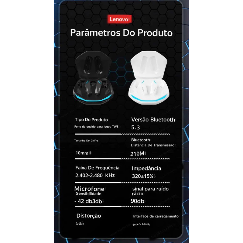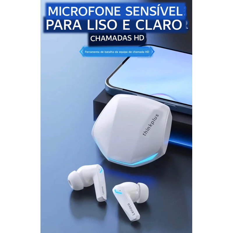 Fone De Ouvido Gamer Sem Fio Lenovo GM2 PRO Bluetooth 5.3 Com Microfone e Cancelamento de Ruido