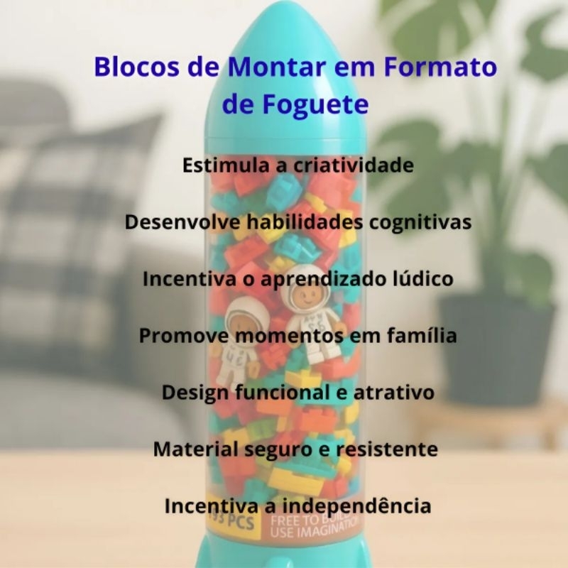 Foguete Com Blocos De Montar Brinquedo Infantil Criativo com 195 peças única unidade