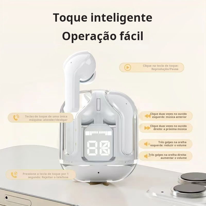 Fone De Ouvido Sem Fio Microfone Embutido Controle De Toque Hifi Esportivos Com Redução De Ruído 5.3