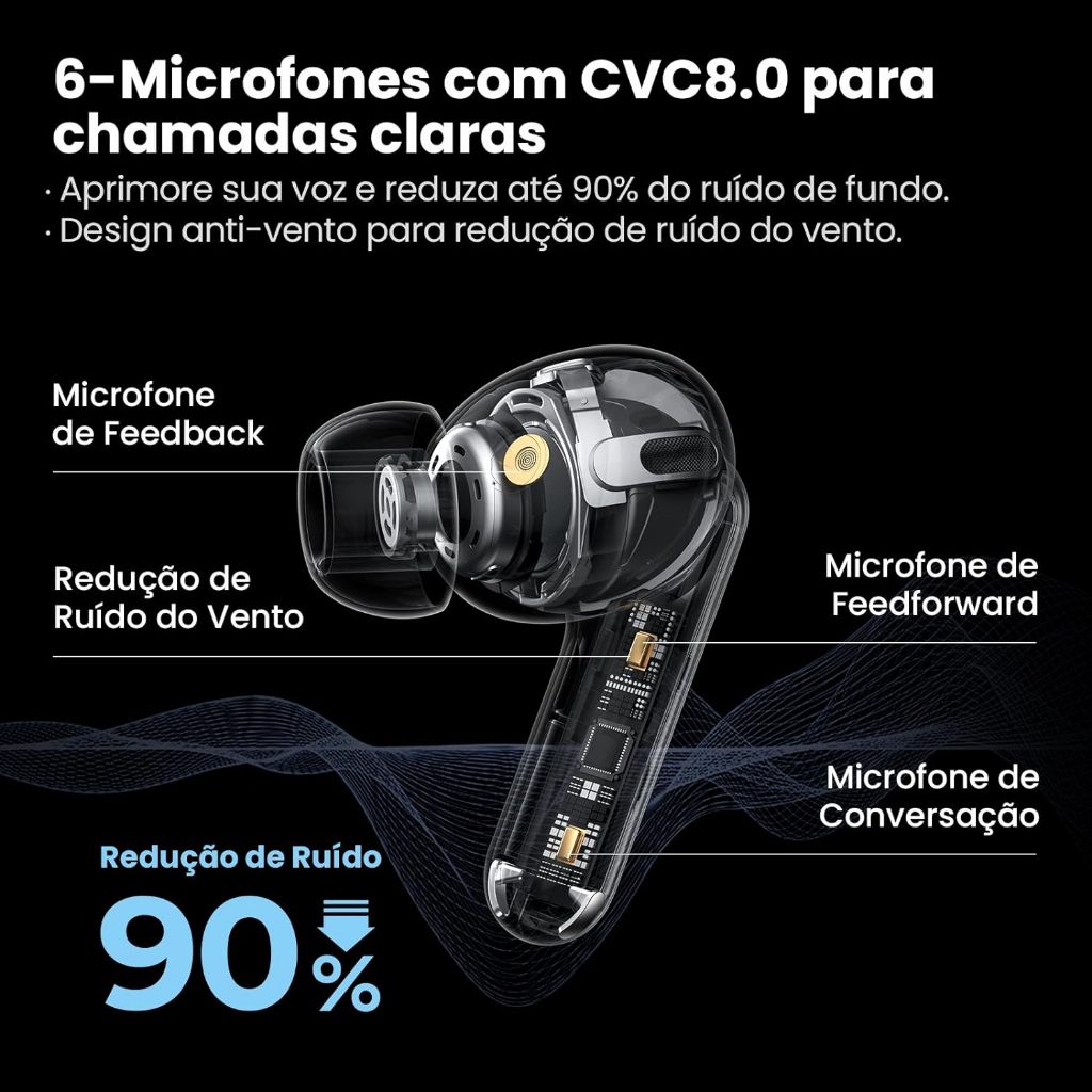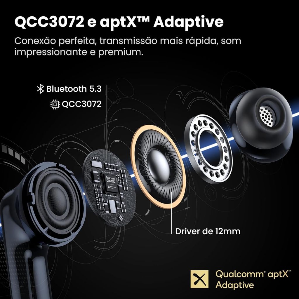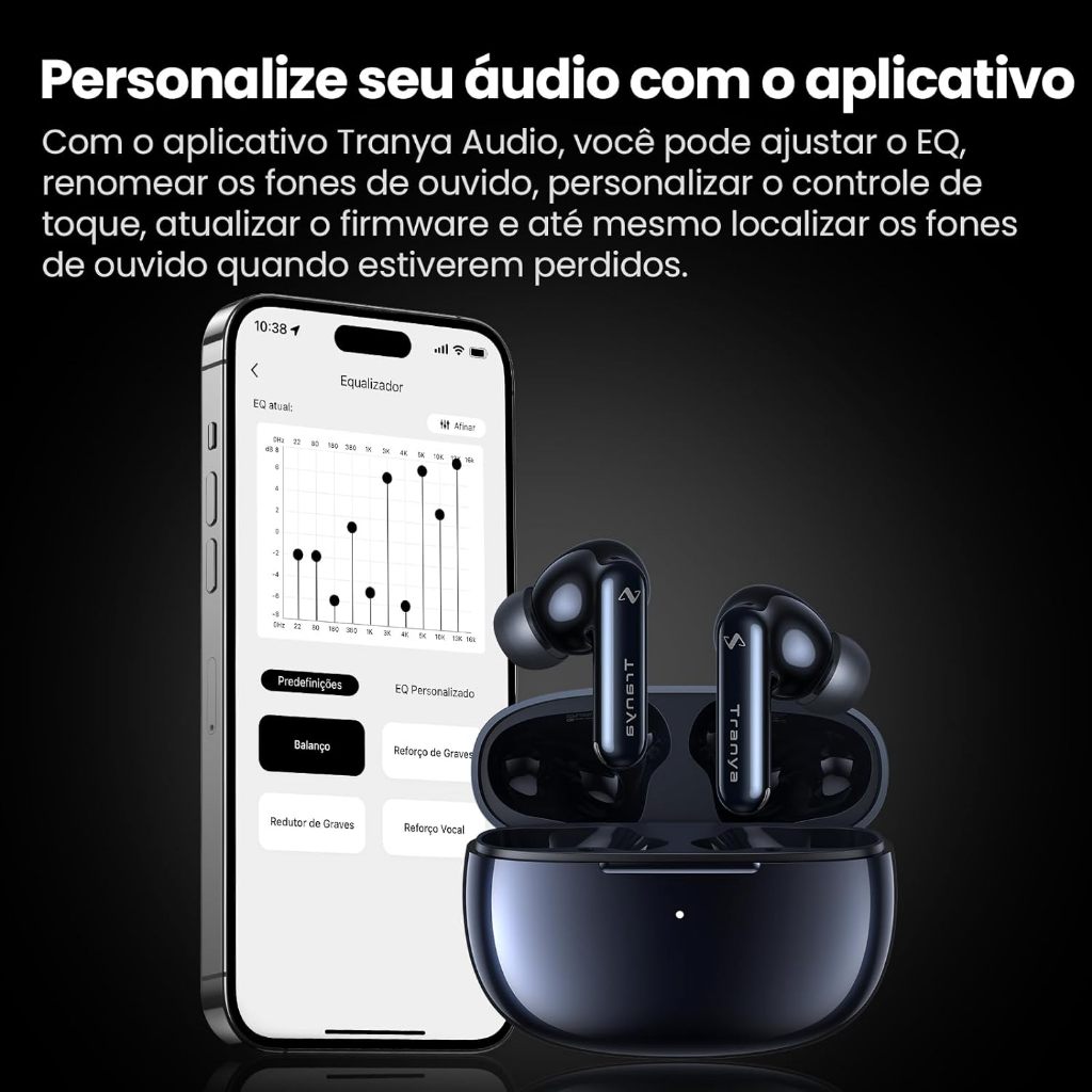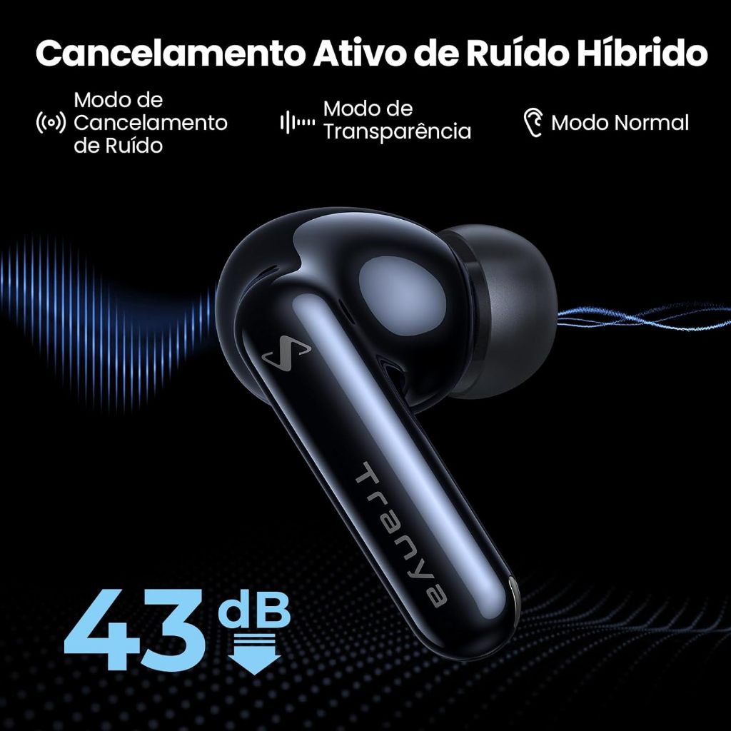 Fone De Ouvido Sem Fio Tranya Nova - Bluetooth 5.3 - Com ANC e Modo Ambiente + APP - Qualcomm aptX