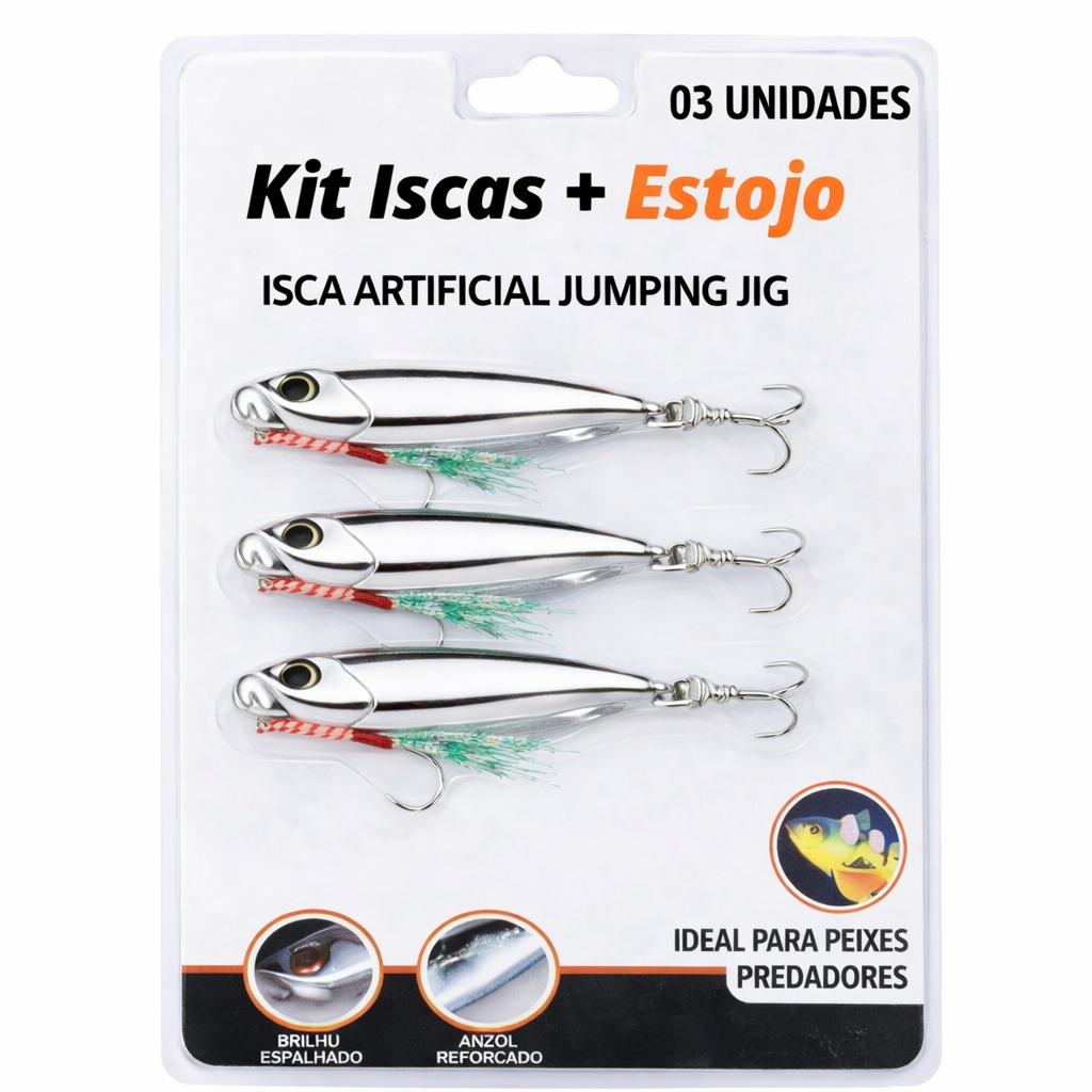 Kit 3 Iscas Metal Jig Pesca Oceânica Trolling Jigging Capa Laser Wobbler Anzol Duplo