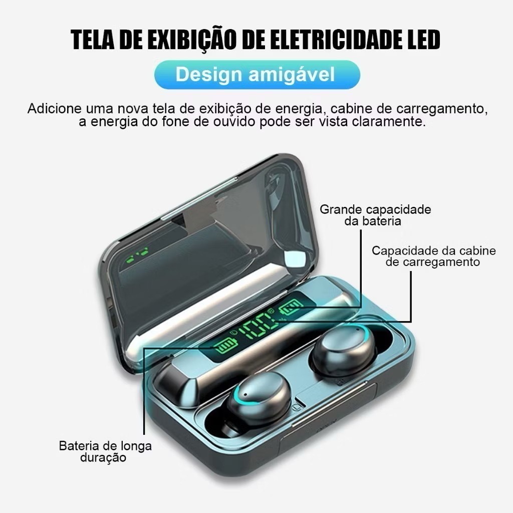 Fone F9-5 Sem fio - Bluetooth V5.3 - Carregador de celular - O melhor F9 do mercado NARISA